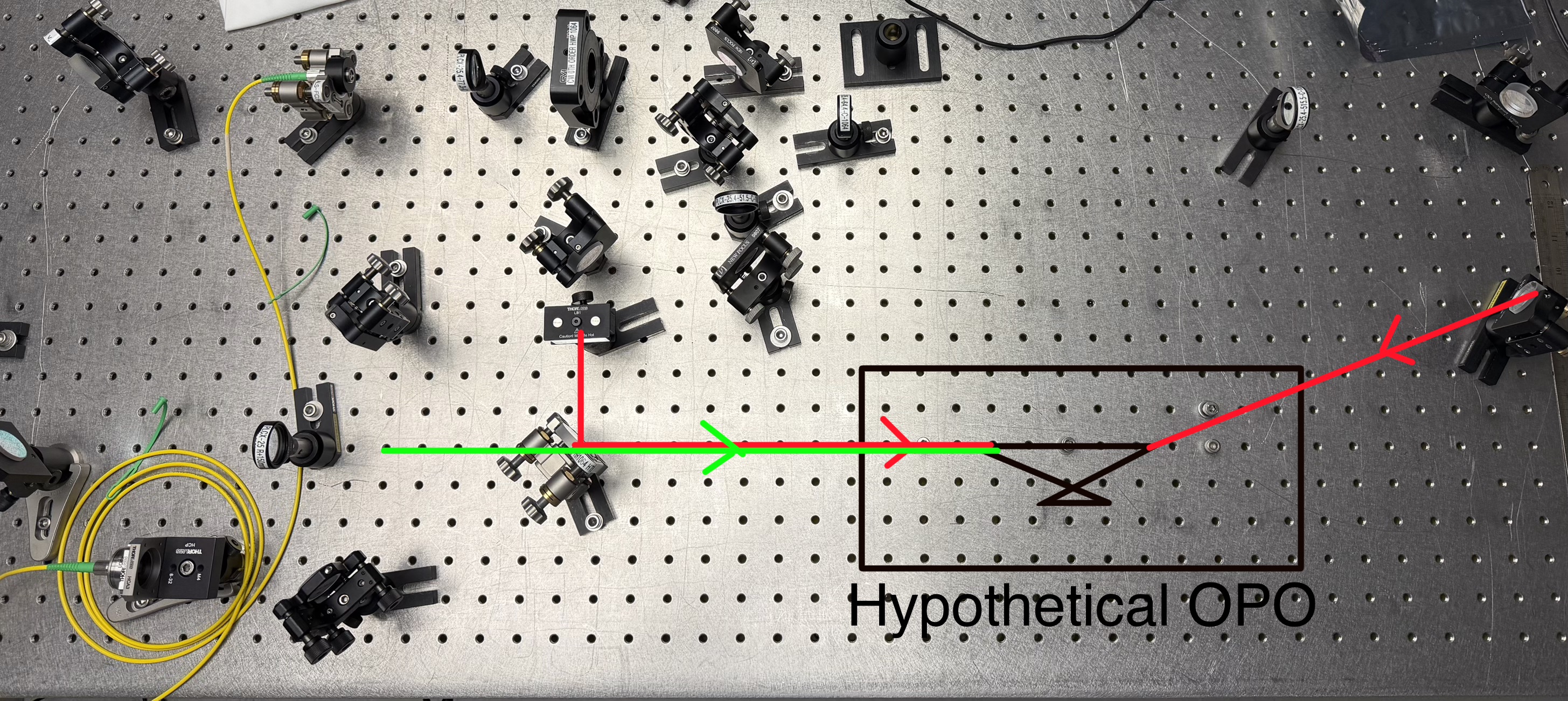 The mode matched minor and major beam waist is 198.6um, 204.2um for 1064nm and 152.6um, 185um for 532nm. For the fundamental injection via the rear mirror, the measured waist is 197.25um, 231.85um. These waist is measured at the position marked with a "star". The mode-matching calculation has been reviewed by a fur-low scientist.