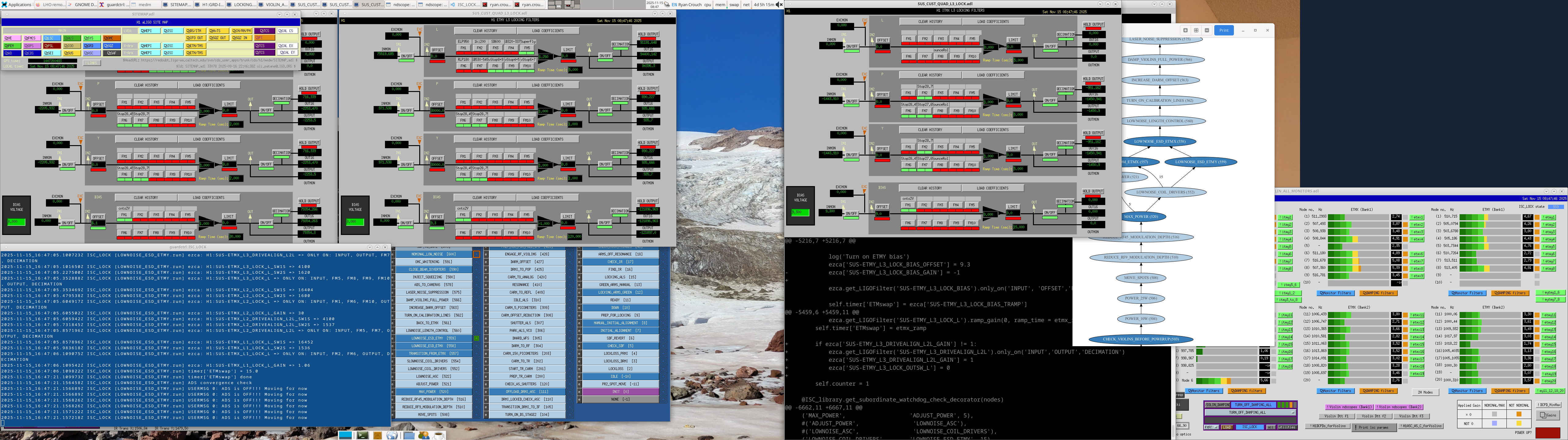 When I clicked into Lownoise_ESD_ETMX my Guardian back ground flashed red... indicating guardian issues , then: