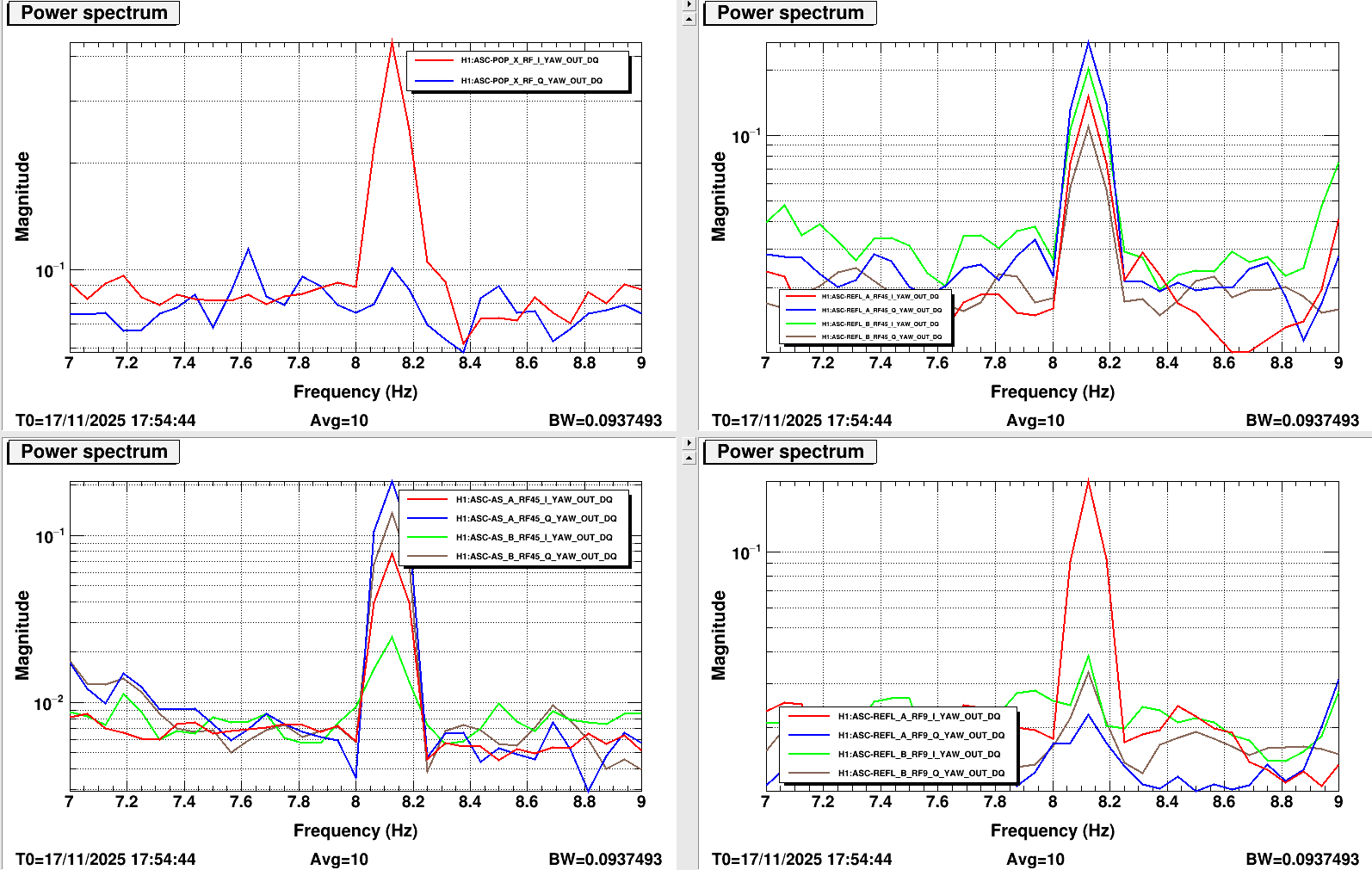 I drove a pitch line from PR3 M3 and SR3 M3 at 8.125 Hz with the ASC notches on. I was able to see at signal with a 10 ct drive on PR3 pitch and 60 ct drive on SR3 pitch.