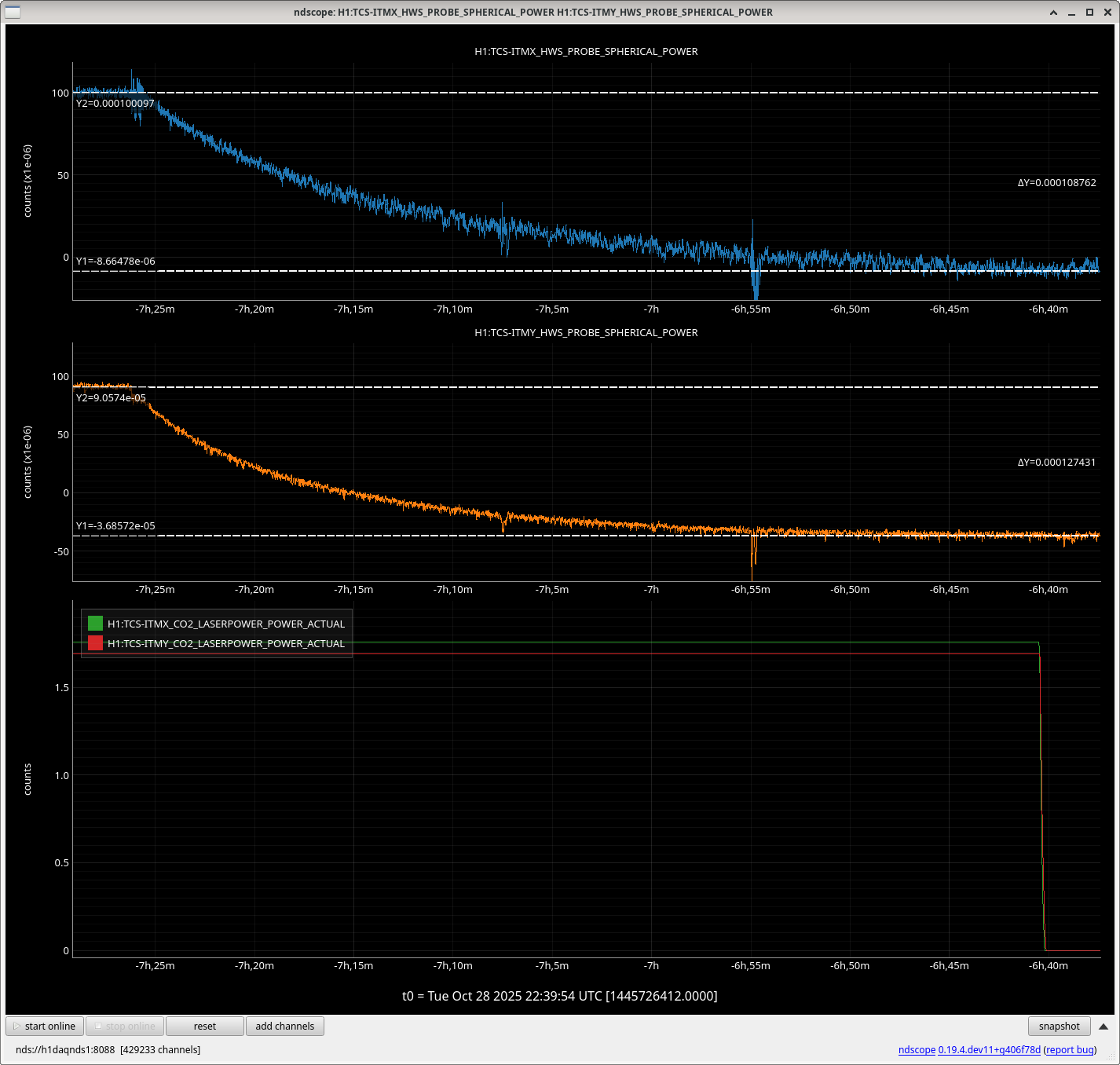 | Inferred ETM absorbed powers from HWS Estimates | ETMY = -55mW, ETMX = 121mW |