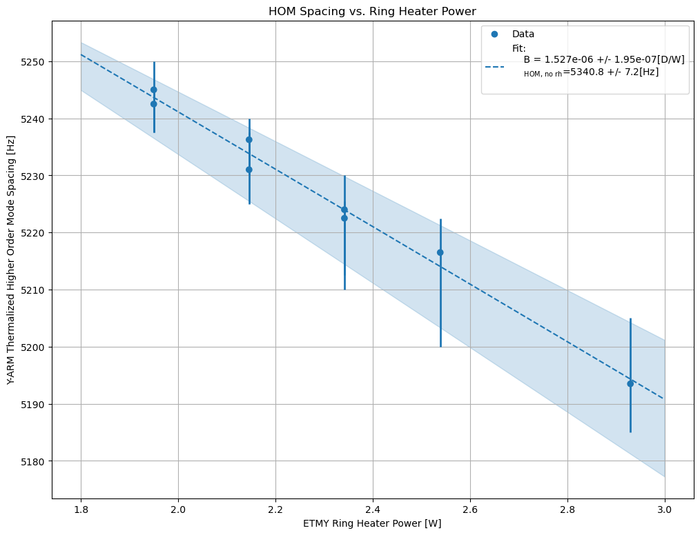 | Inferred ETM Ring Heater Coupling from YARM HOMs fit of ETMY Ring Heater Settings Sweep | 1.53 uD/W |