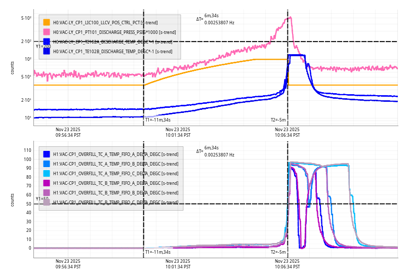 Quick fill, ended when TC-A saw a spurt of LN2 and its delta-T exceeded the trip limit, the full overflow followed shortly after.