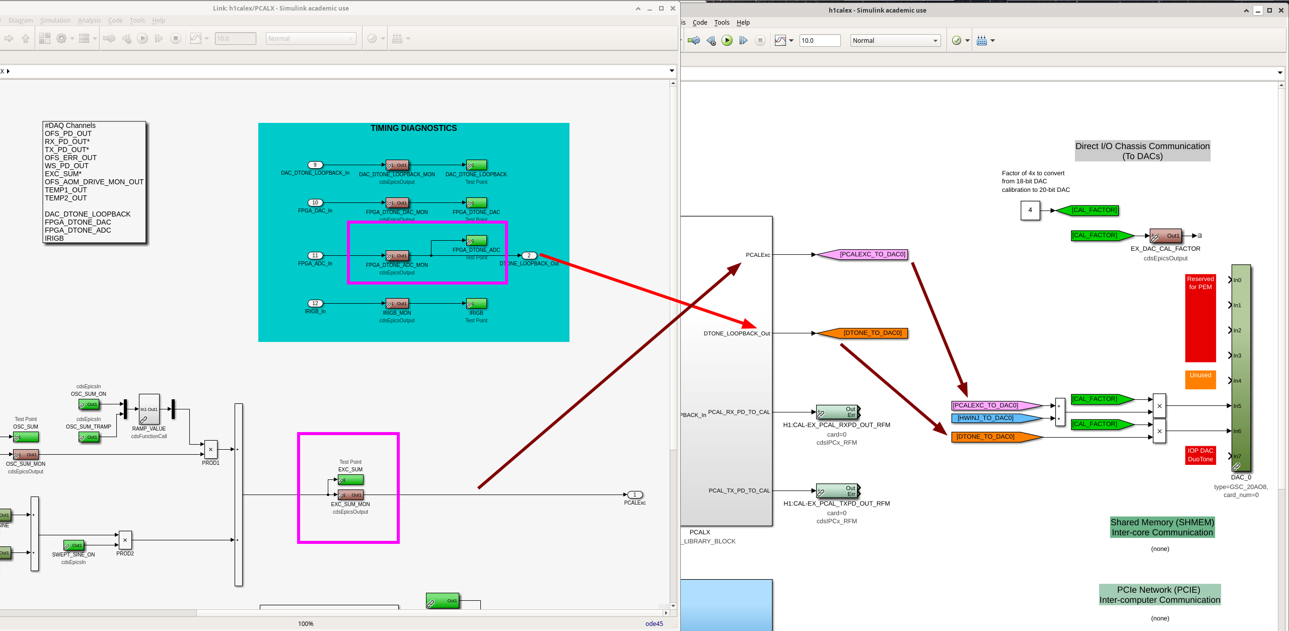 :: Then CAL_FACTOR is piped into multiplication blocks downstream of the DAC outputs such that the two channels used by the model CH5 and CH6 (with the count starting at 0; CH6 and CH7 in the analog world where counting starts at 1)