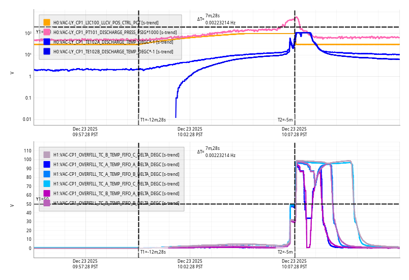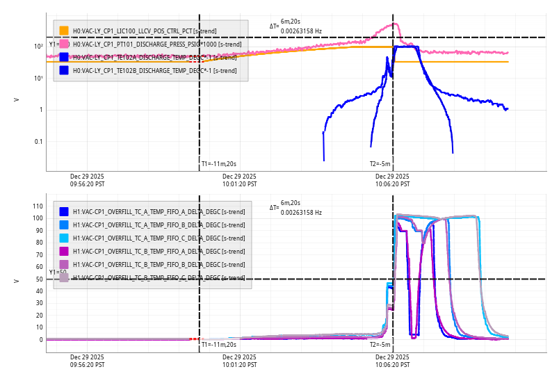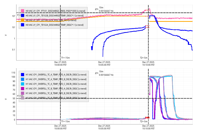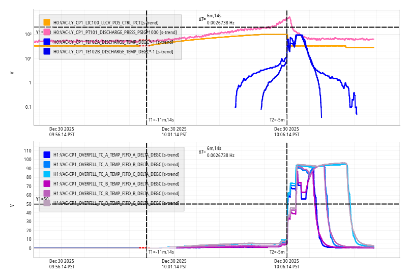 VACSTAT raised a single-gauge alarm for PT527, its rate-of-rise did not trip (reached 40% of trip level) but its Delta-P did trip (reached130% of trip level).
