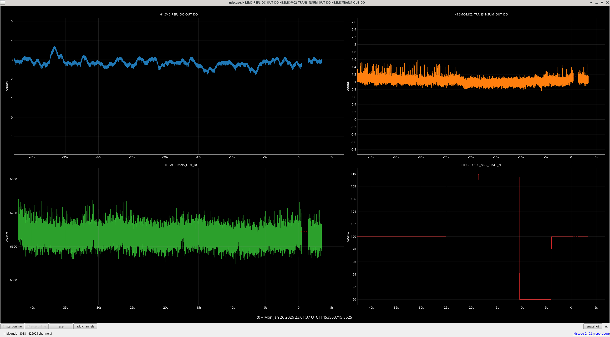 We therefore switched to using these as our metric while we optimised the alignment into the IMC with the same two mirrors JAC_M3 and JM2.