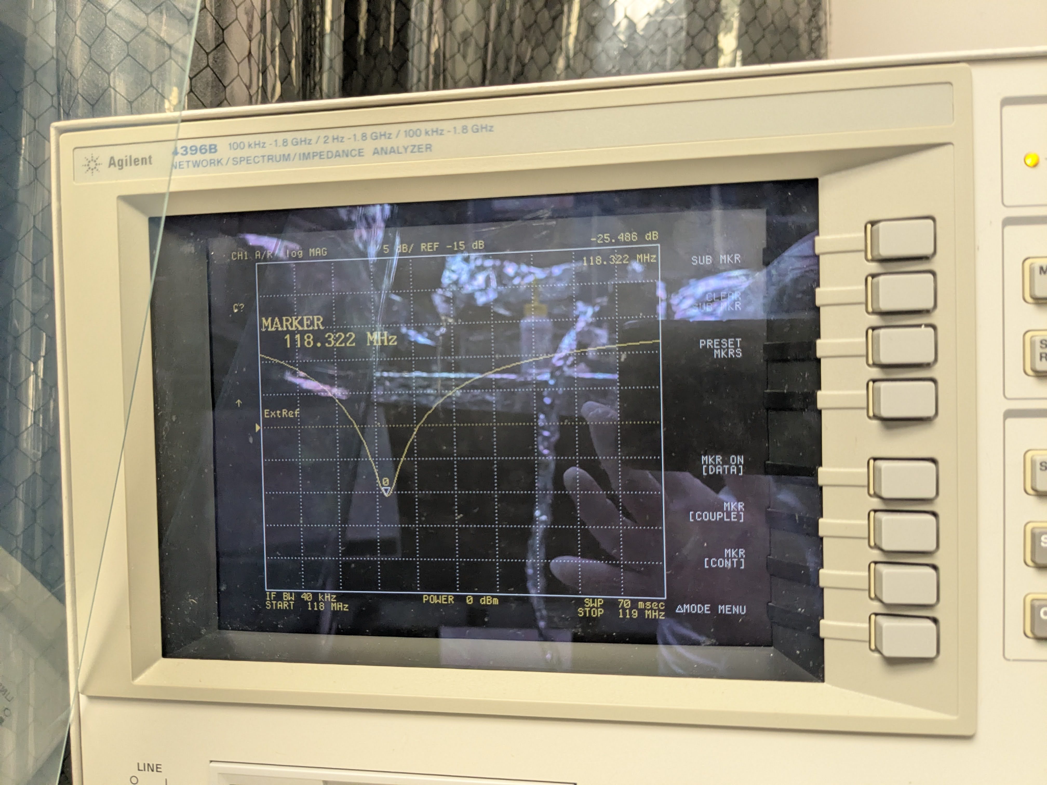 In the in-between method, we couldn't record the initial 118MHz dip because it jumped up by 10kHz or so in front of our eyes when we were moving around the table. Not sure what happened but I assumed that it was some kind of shaking. However, I gently tapped the front and side plates and couldn't cause another shift.