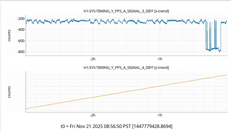 Starting at 08:38 PST this morning the 1PPS signal from EY CNS-II clock, as seen by the comparitor, started dropping from is nominal range of -200 to -700 nS.