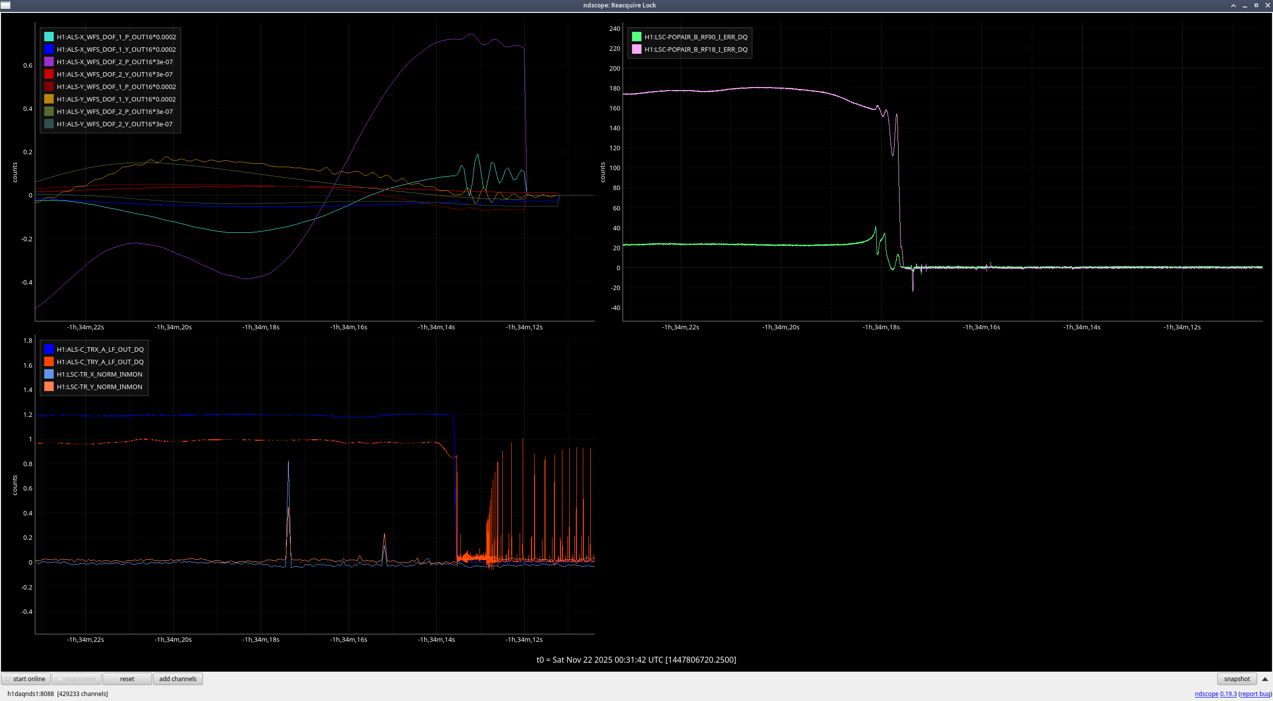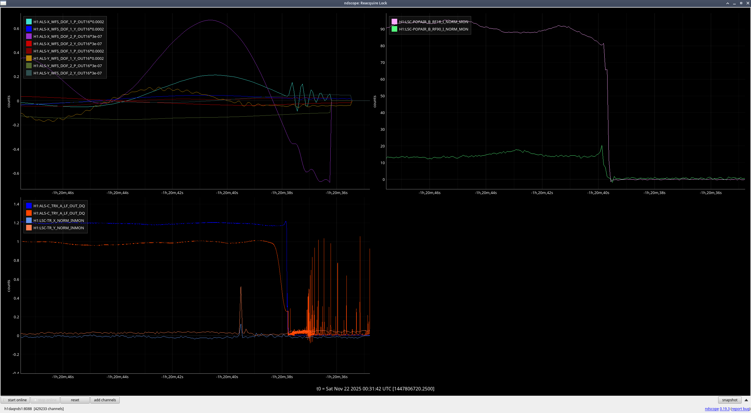 Edit: this didn't complete because the IFO unlocked, I've stopped both scripts now. This is what the log says:
