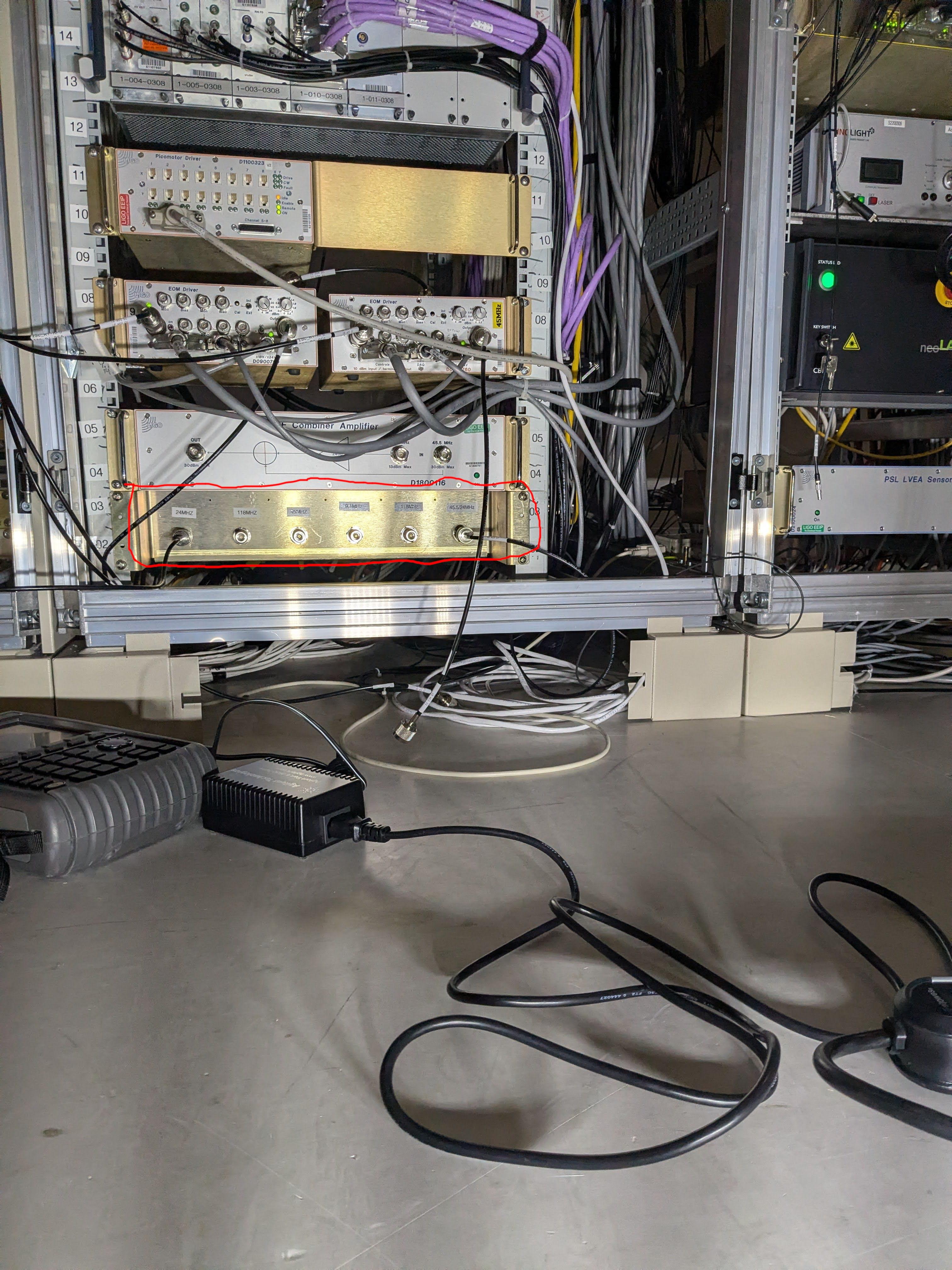 After the EOM was relocated to its final location, RF sources were connected to the front of the patch panel.