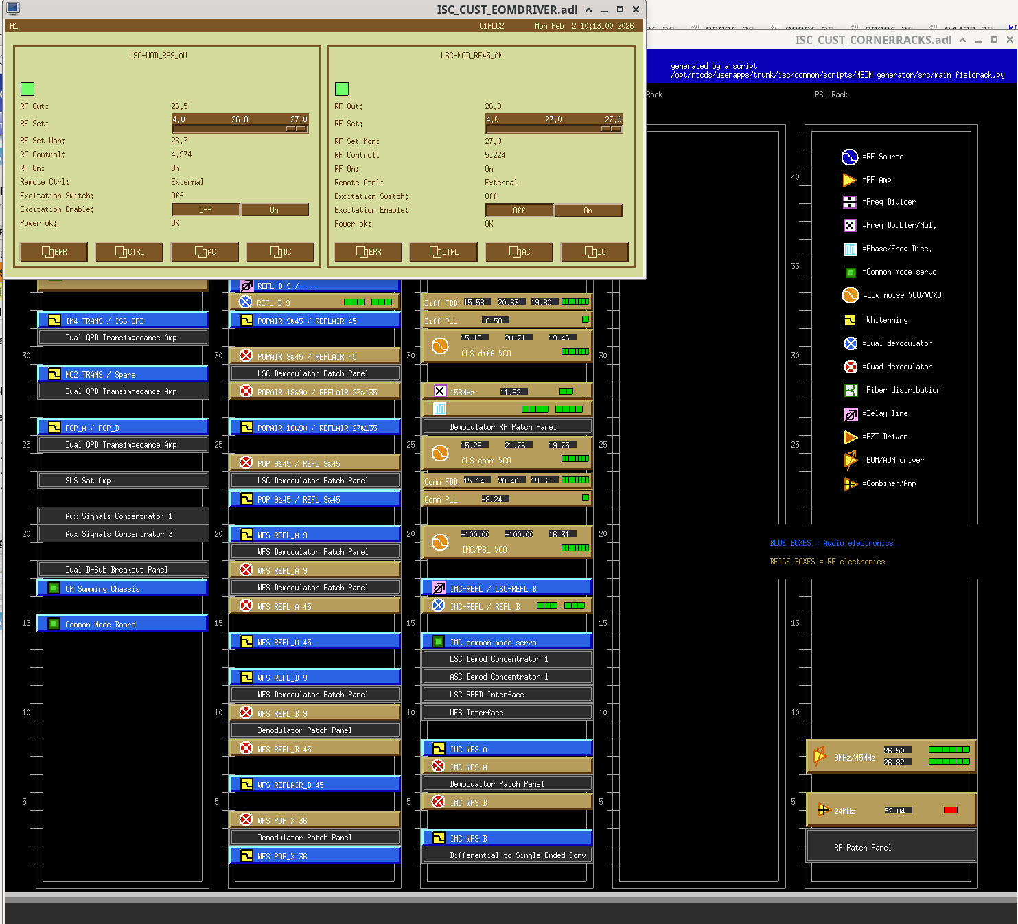 After some cable redressing last week the OPO was looking a lot better (88921), and then some further redressing was done (88957), which didn't seem to help, but at least didn't make Yaw worse. Those measurements were all taken with the ISI Locked. Yesterday I took what were supposed to be closeout measurements with the ISI now unlocked and DAMPED, but those measurements looked different from last week's, and not in a good way. There were two sets of measurements taken yesterday, one with the OPO damping all off (2026-02-03 1815UTC), and one where the DOF being measured was turned off, but the other DOFs were left damping (aka semi-off) (2026-02-03 1730UTC). Both measurement sets looked about the same besides a small increase in the highest frequency peak, but nowhere near the height it had been at last week(regular, zoomed).