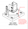 The two cables on the right hand side of the EOM mount feed straight through the strain relief into the SMA connection, this is fine. However, the placement of the post on the left hand side is a bit short of where the SMA connections are, so the cable bends a bit to make it through the strain relief post and go to the connector. This is tricky because the SMA cable is also very stiff. I don't know if this is a problem. I took several pictures of how this looks just in case. You can see how one side is straight and the other side is "S" shaped through here.