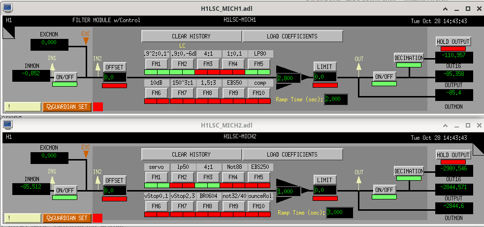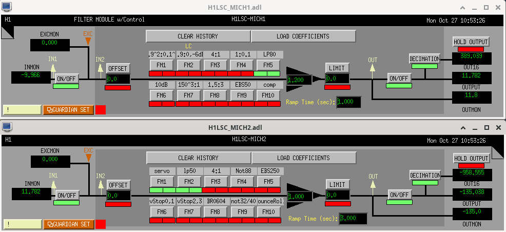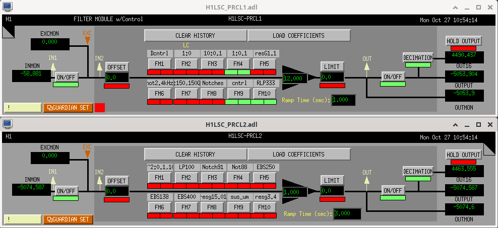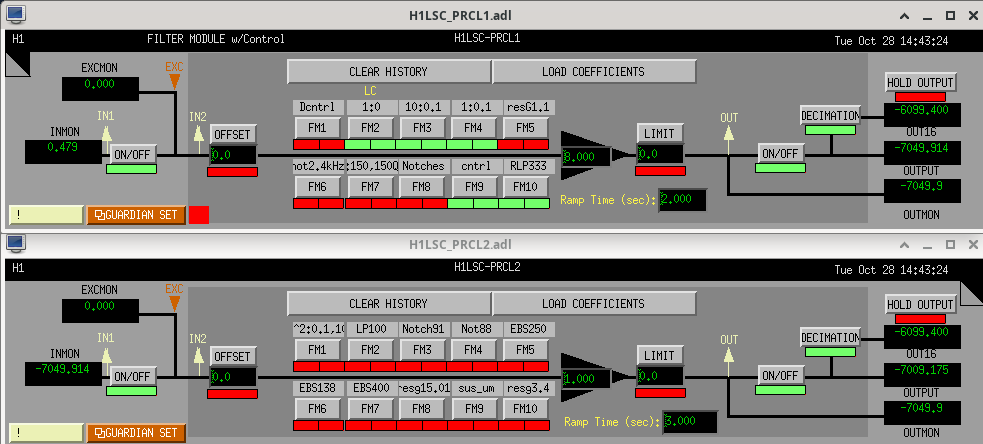 MICH, PRCL, SRCL filter banks during the "acquire DRMI 1f" state before the lock is grabbed.