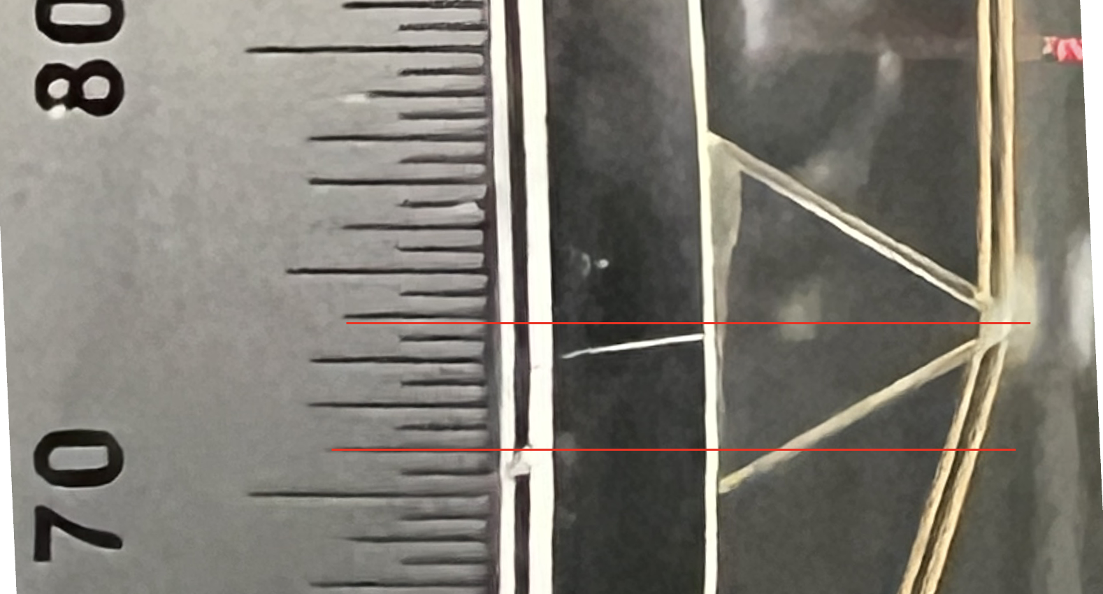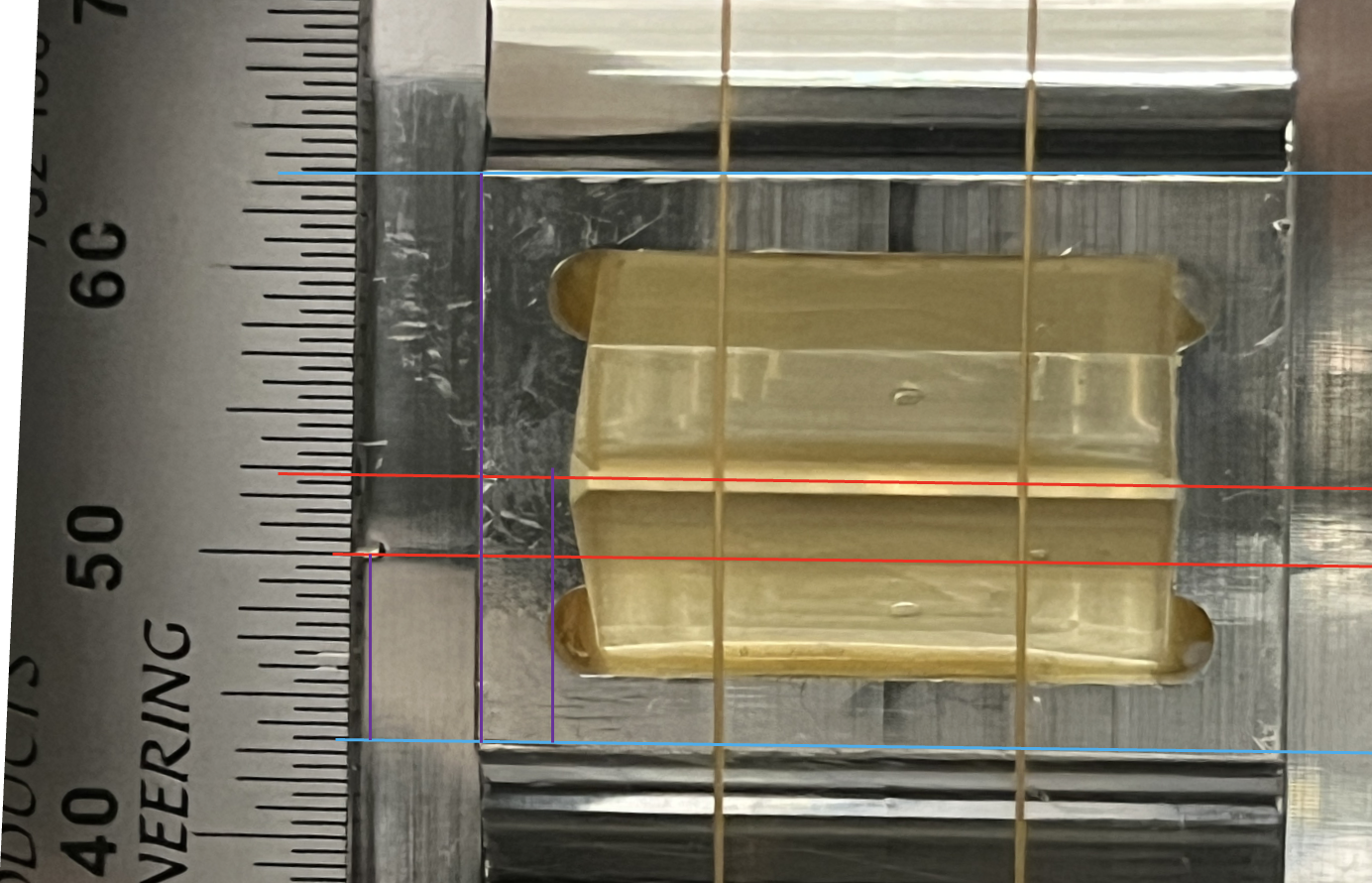 As it turns out, measuring from the scribe line of the center of the dummy test mass, yields an "dummy mass upside down" answer that has confused us (LLO Measurement). However, using the scribe on the glued tooling that we used to determine the secondary prism location resulted in the correct value ~2.73mm. While all these are rough measurements, I wanted to check if LLO's upside-down metal-prism version is equivalent to LHO's scribe-on-prism tooling glued-on version. For the LLO comparison, I used the metal prism build dimensions from D1900580. According to a scale-comparison (using line lengths ratios), they are at least comparable (Figure 2).