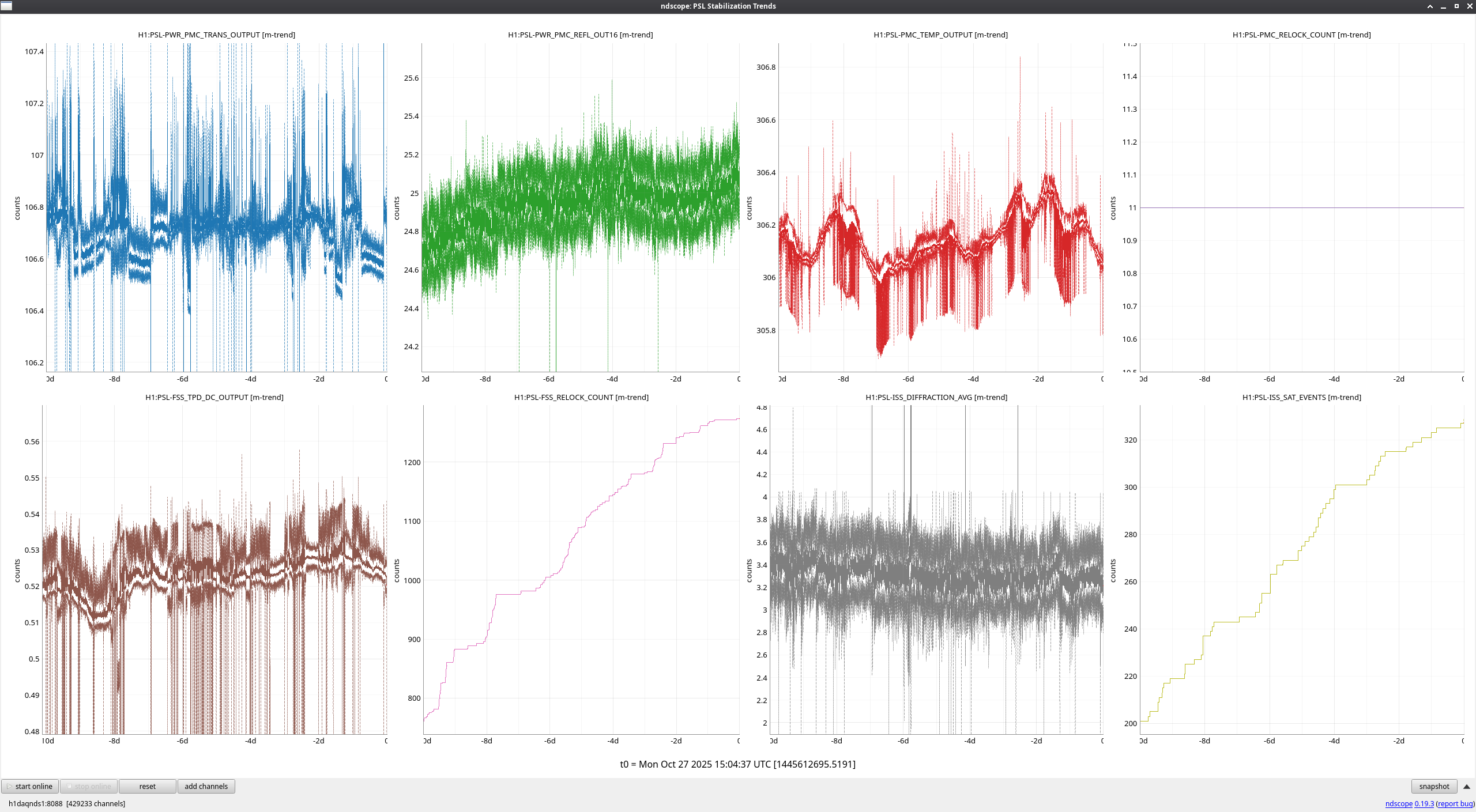PMC TRANS is having a bit of increase again, but otherwise no major events this week. I adjusted the ISS RefSignal this morning to bring the diffracted power back to our target of 4%; something I've been meaning to do for a while.