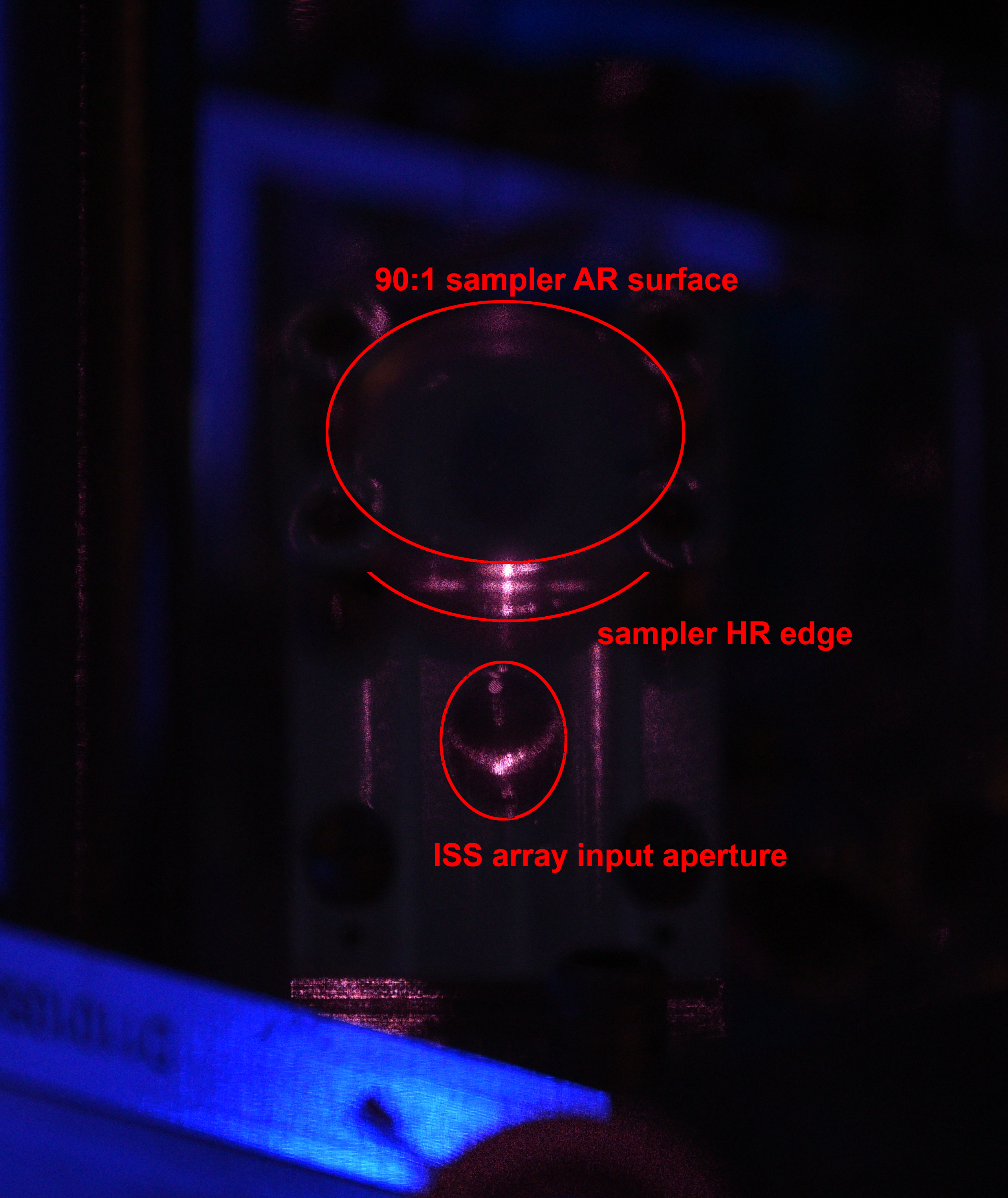 (There was also some IR visible in the input aperture but the beam is much smaller than this aperture, I believe we're seeing the scattered light coming back to this aperture from inside the array structure.)