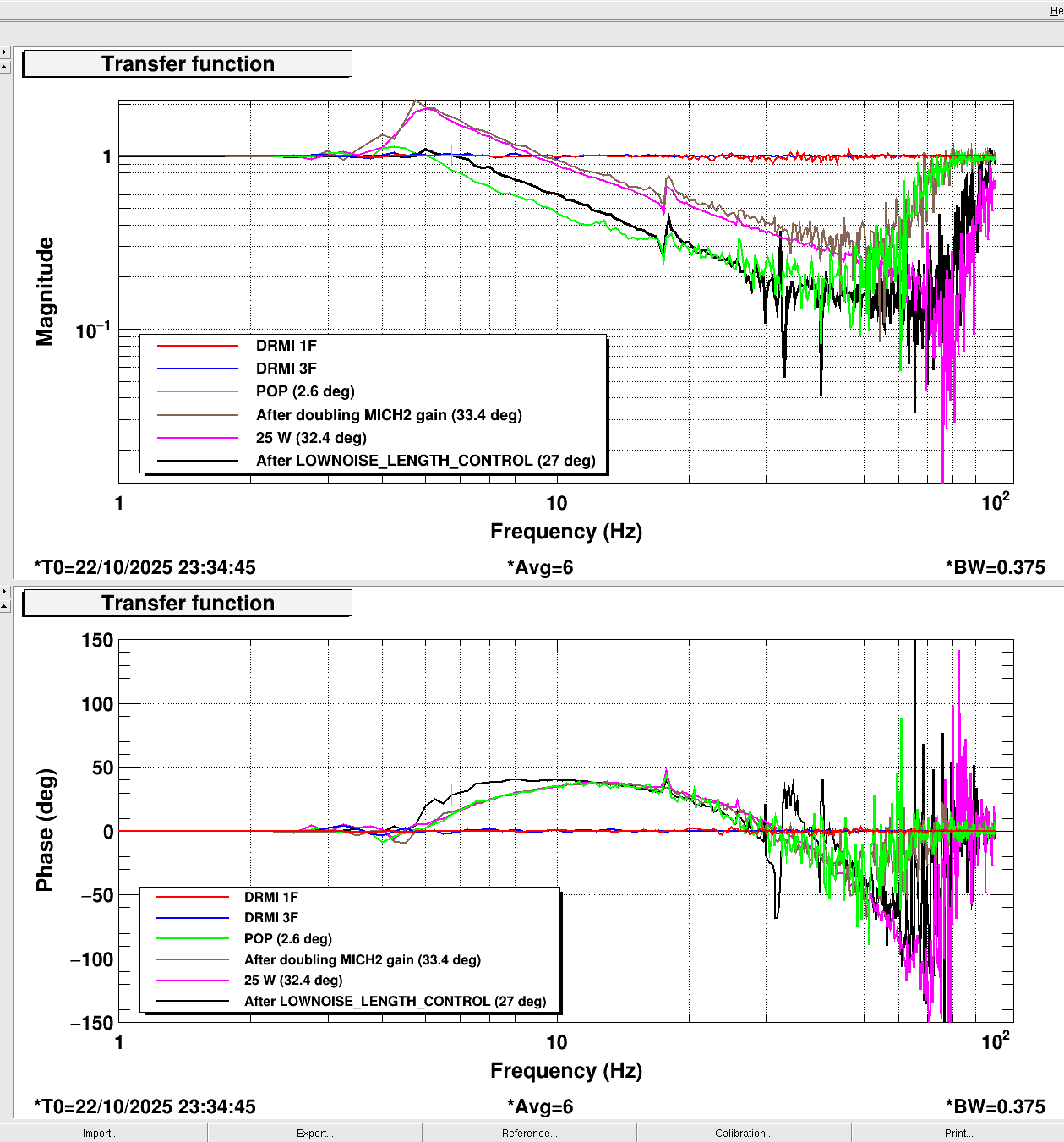 Here's the measurements taken for MICH that show the phase margins at different points in the locking sequence