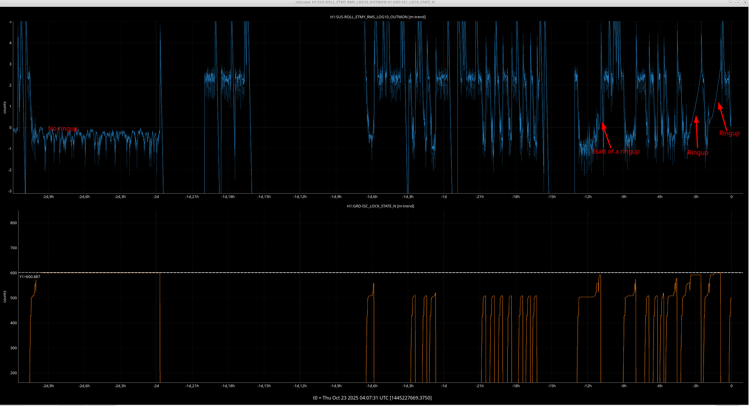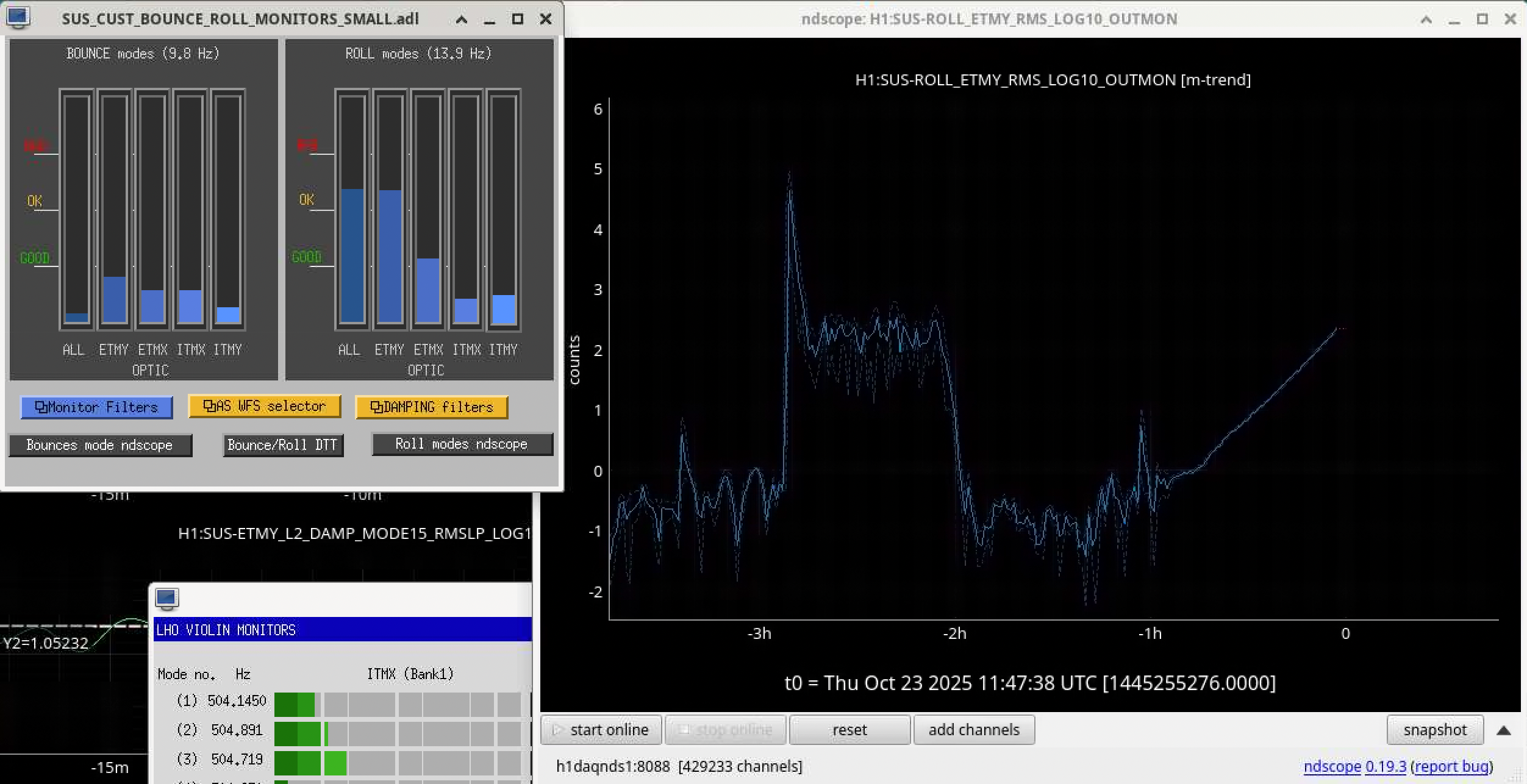 Really doesn't look great especially that as soon as we're near NLN, the EY Roll mode begins to trend upwards. Violin modes are going down though.