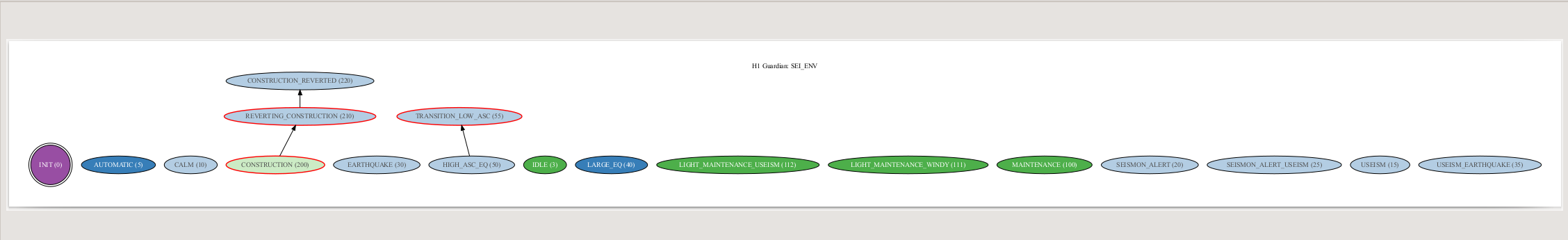 Round 2 of testing the guardianization of turning on and off the high ASC gains (Round 1 - alog87462). SEI_ENV will now automatically move us into the high gain ASC state when a.) we are in the earthquake state b.) there is an incoming or ongoing earthquake that is at or below the dotted line on the "rasta plot". The transition takes 11 seconds to complete, and it will transition back when the ground motion is low enough to bring us out earthquake state.