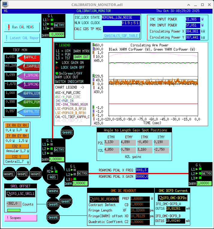 | PR3 RoC [m] | SR3 RoC [m] | POP Measurements Overlap [%] | Input Mode to OMC Overlap with ITMX misaligned [%] | PRC Gouy (x, y) [deg] | SRC Gouy (x, y) [deg] |