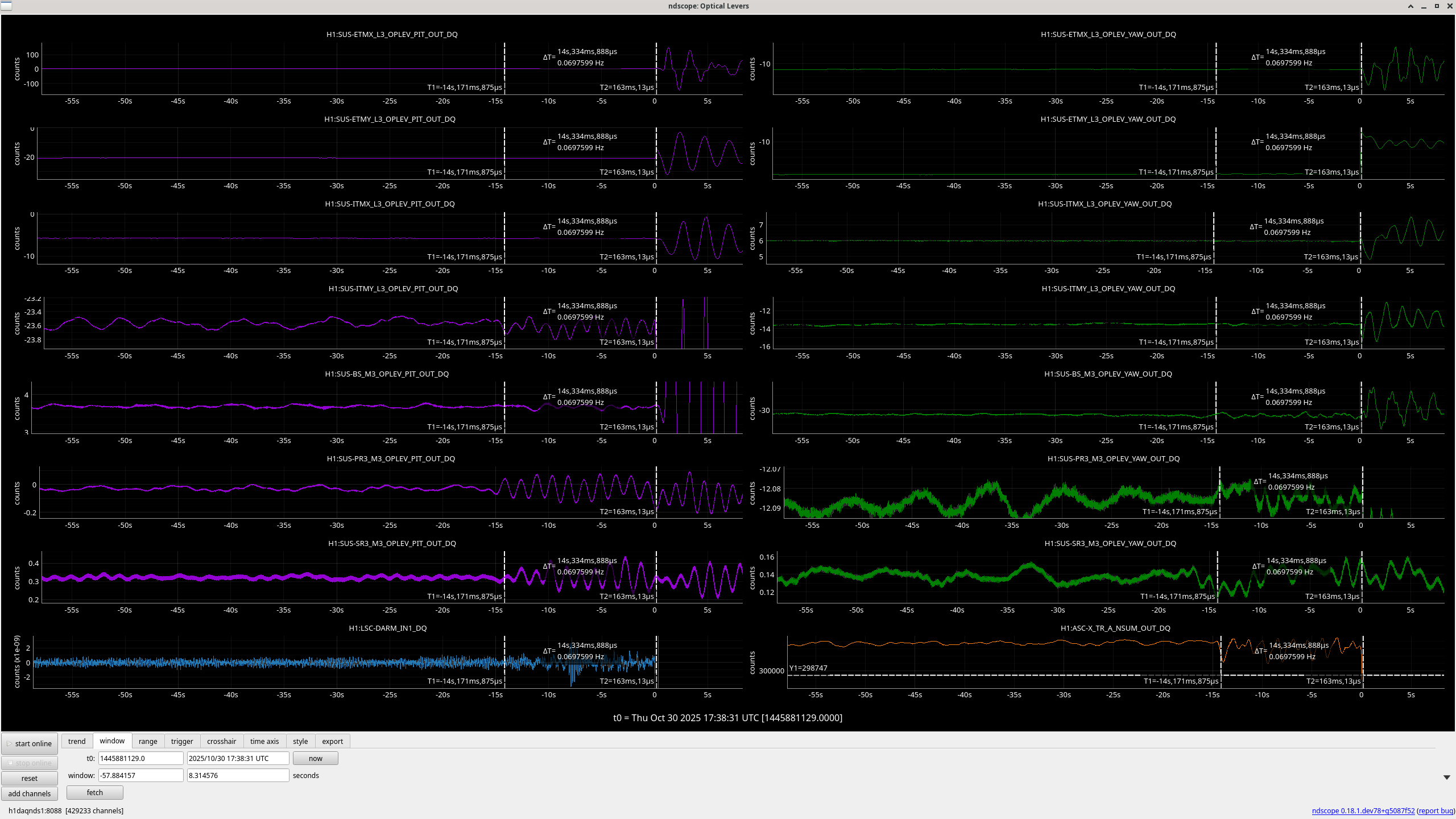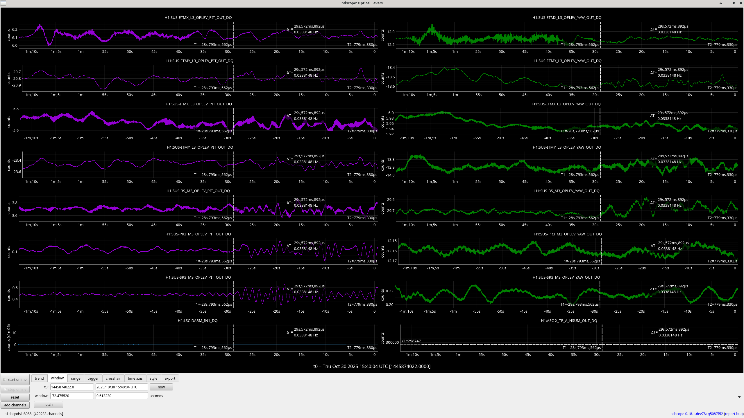 J. Kissel Comparison of local performance metrics for H1 SUS PR3 after turning on the LP estimators this morning. 2025-10-30 13:00 UTC -- only Y estimator ON 2025-10-30 17:00 UTC -- all LPY estimators ON. Both times are when IFO is in nominal low noise with no commissioning happening. In short -- L is far more limited by residual suspension point motion that P or Y, so the reduction in off resonance drive is not *as* awesome as in P or Y. But there is reduction in off-resonance drive, and damping on resonance is about the same. Nice! More plots to come...