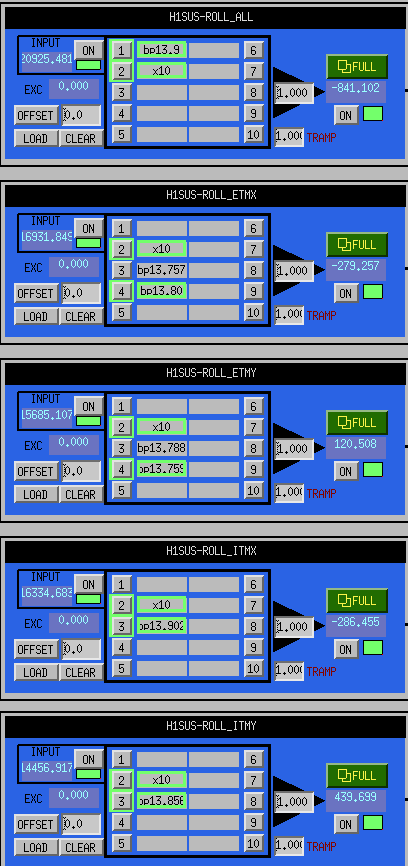Anyhow, we may also consider trying to actuate on other optics, to see if we can do anything to that 13.75 Hz mode? While the monitor filters are all quite narrow (as they should be), the actuator filters appear to all be the same between the optics.