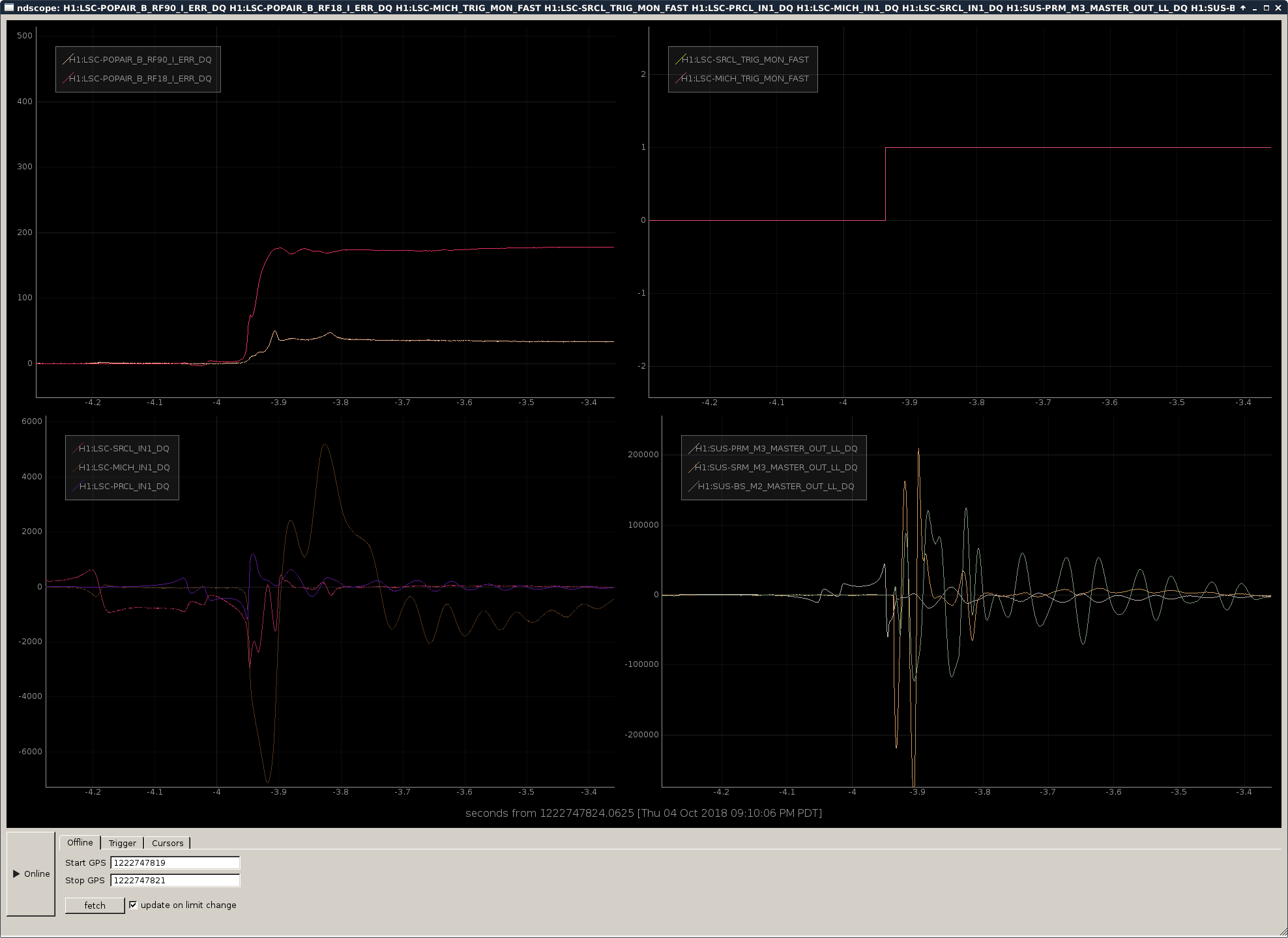On the Oct 4th, 2018 time above, the normalized channel was 82. This means that in the above table, for the good locking time the MICH + SRCL trigger was at 49% of the locked build ups.