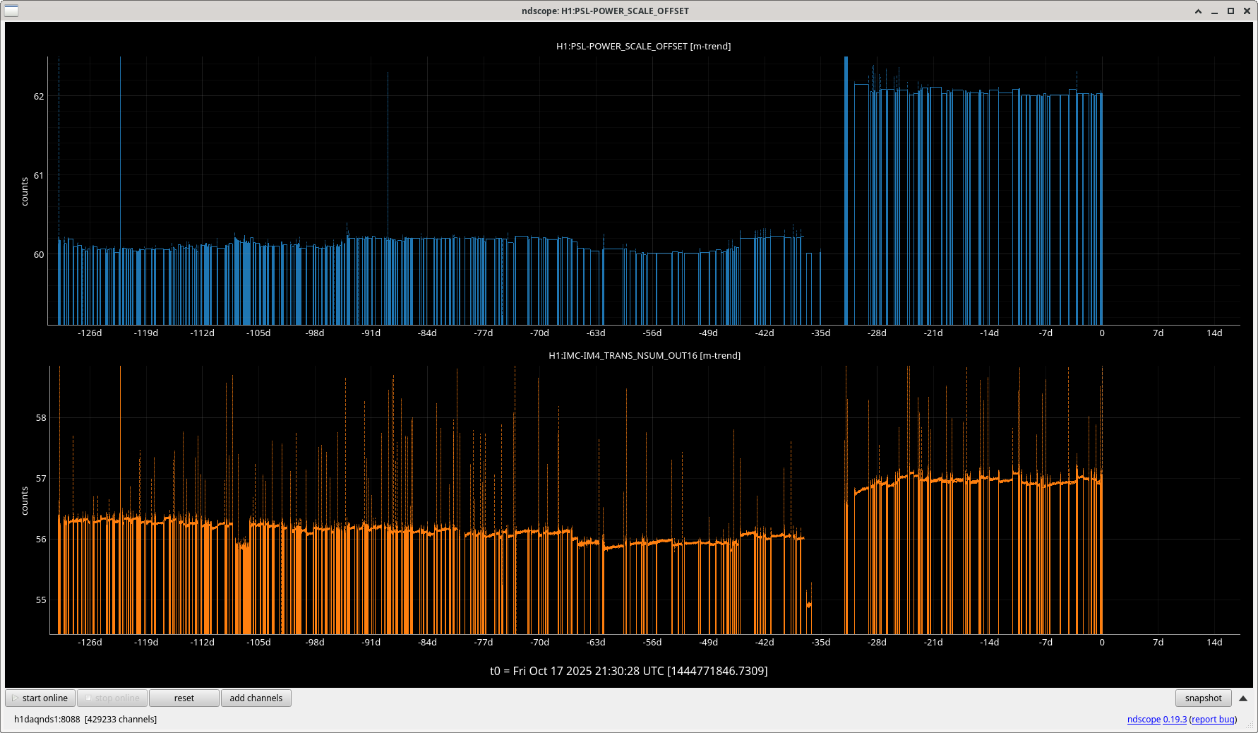 Since the power outage where the IMC throughput was reduced, our power normalization has been reducing gains artificially by scaling with the IMC input power, which has increased now to give us the same input power on PRM.