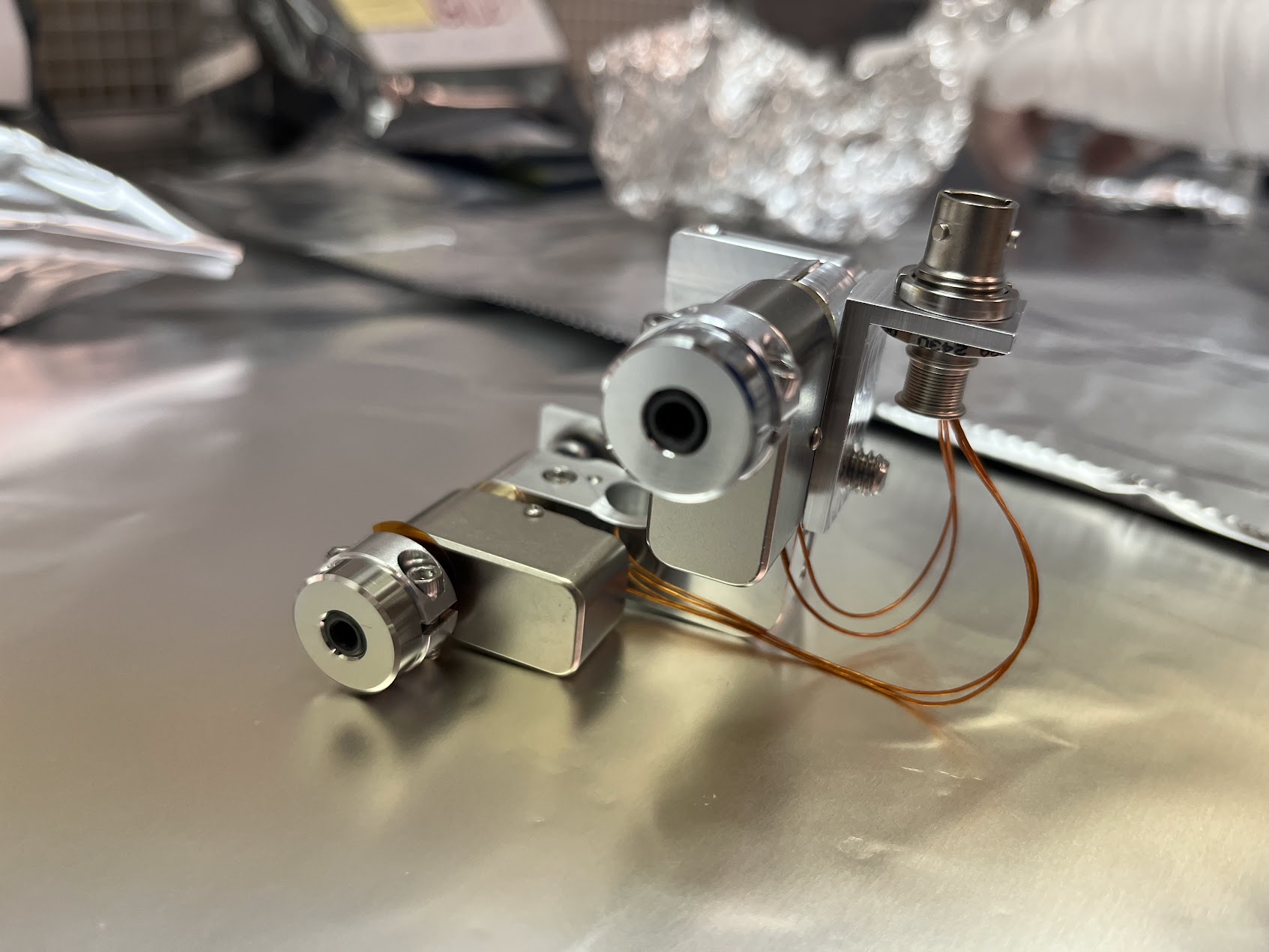 One person used the camera with a zoom lens to check the spot on the PDs as another person loosened the screws from behind the array and the third person held the barrel of the PD assembly to stop it moving or rotating in an undesired direction.