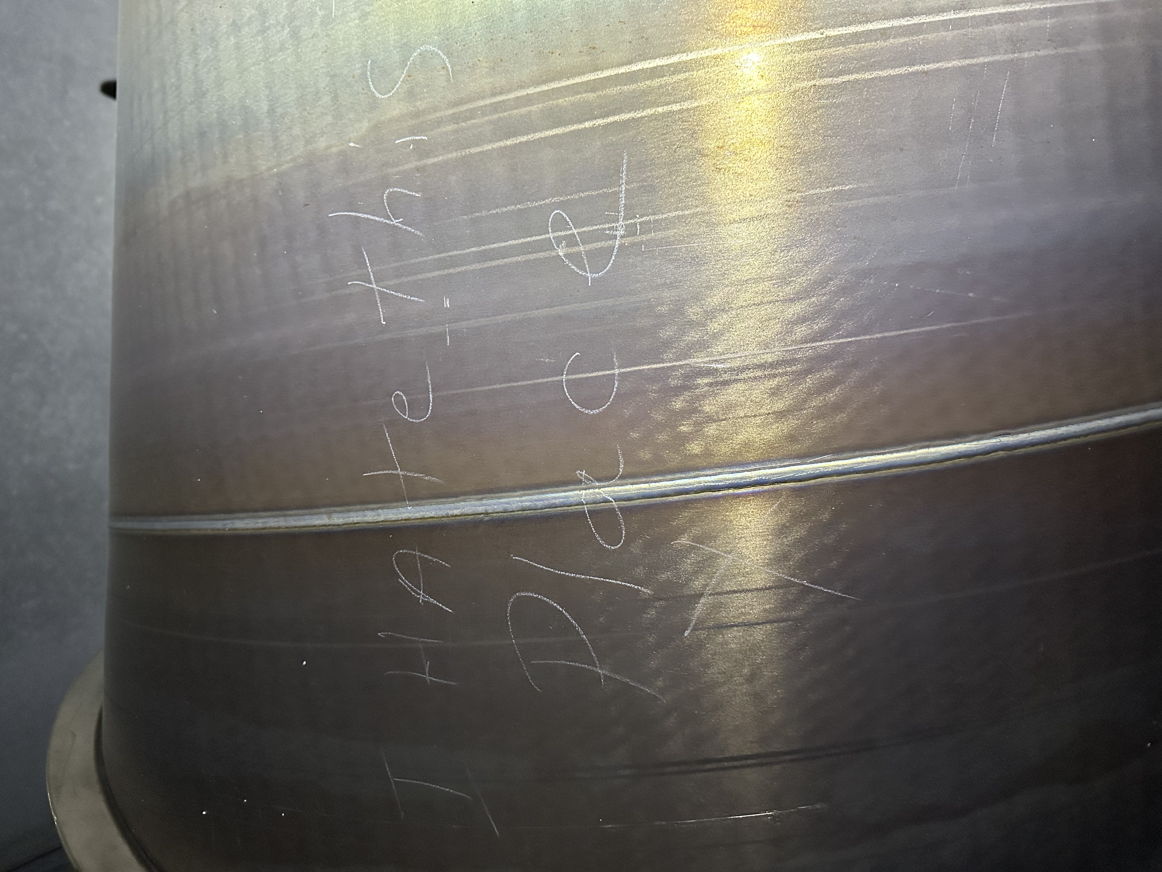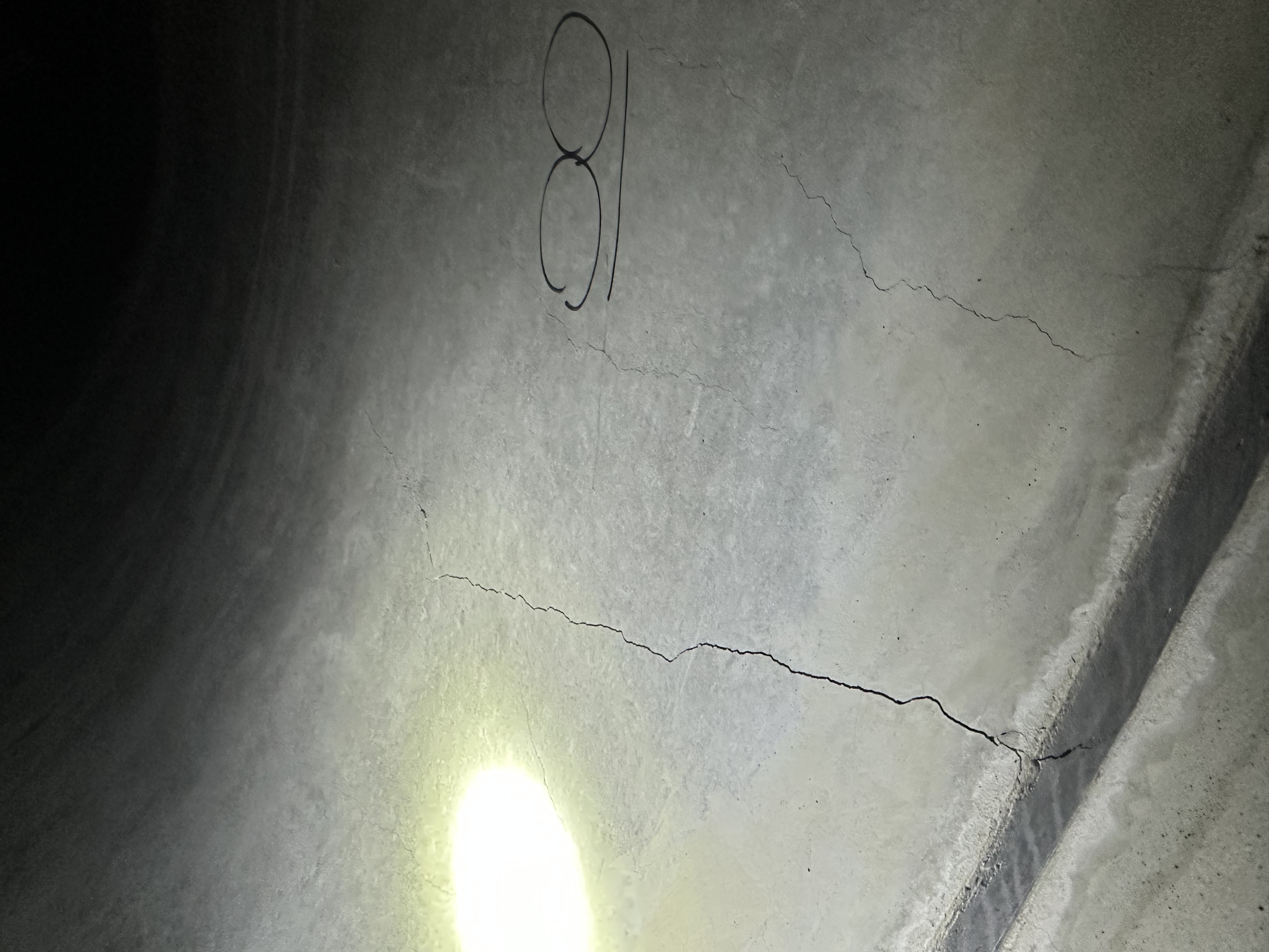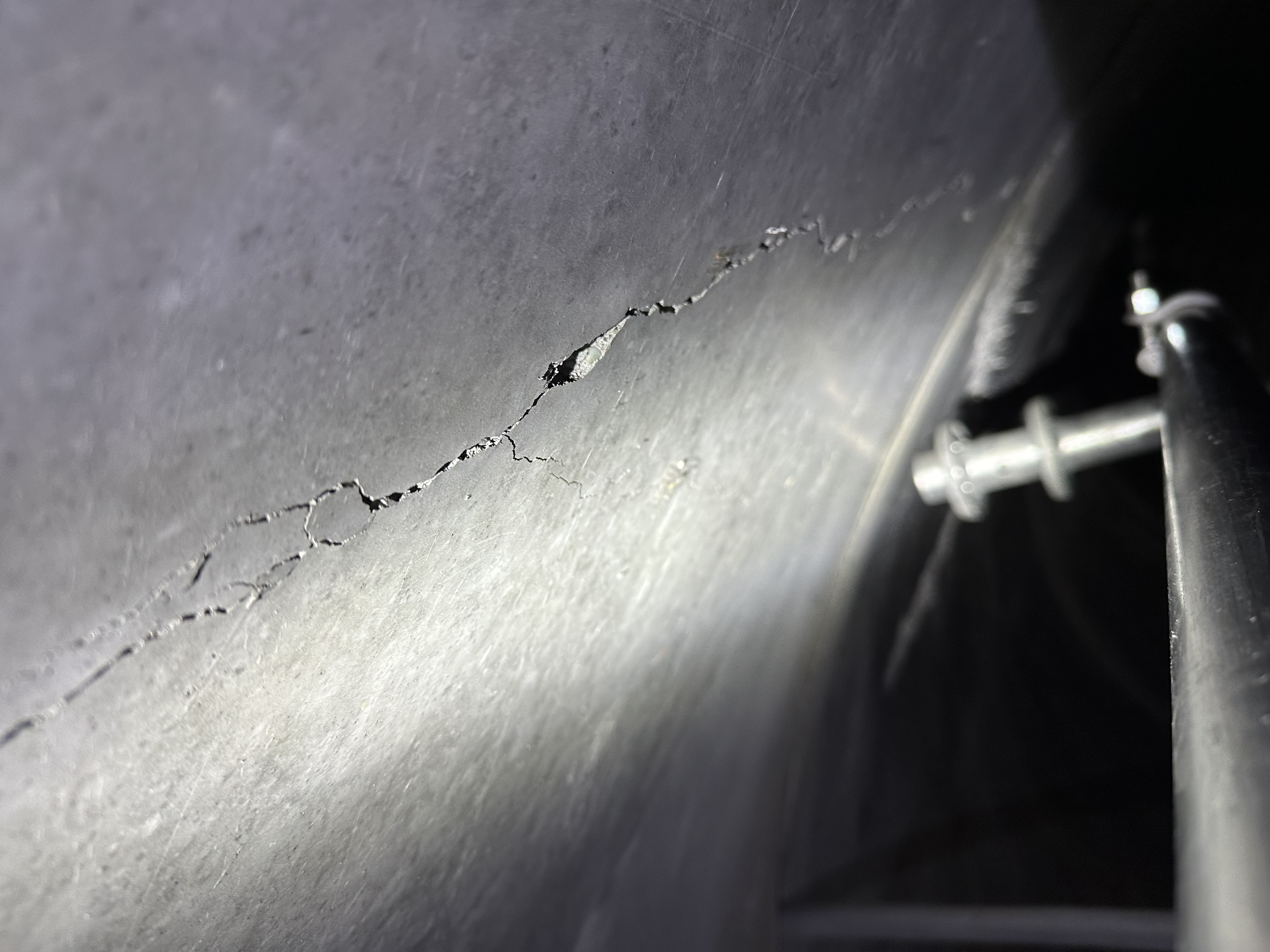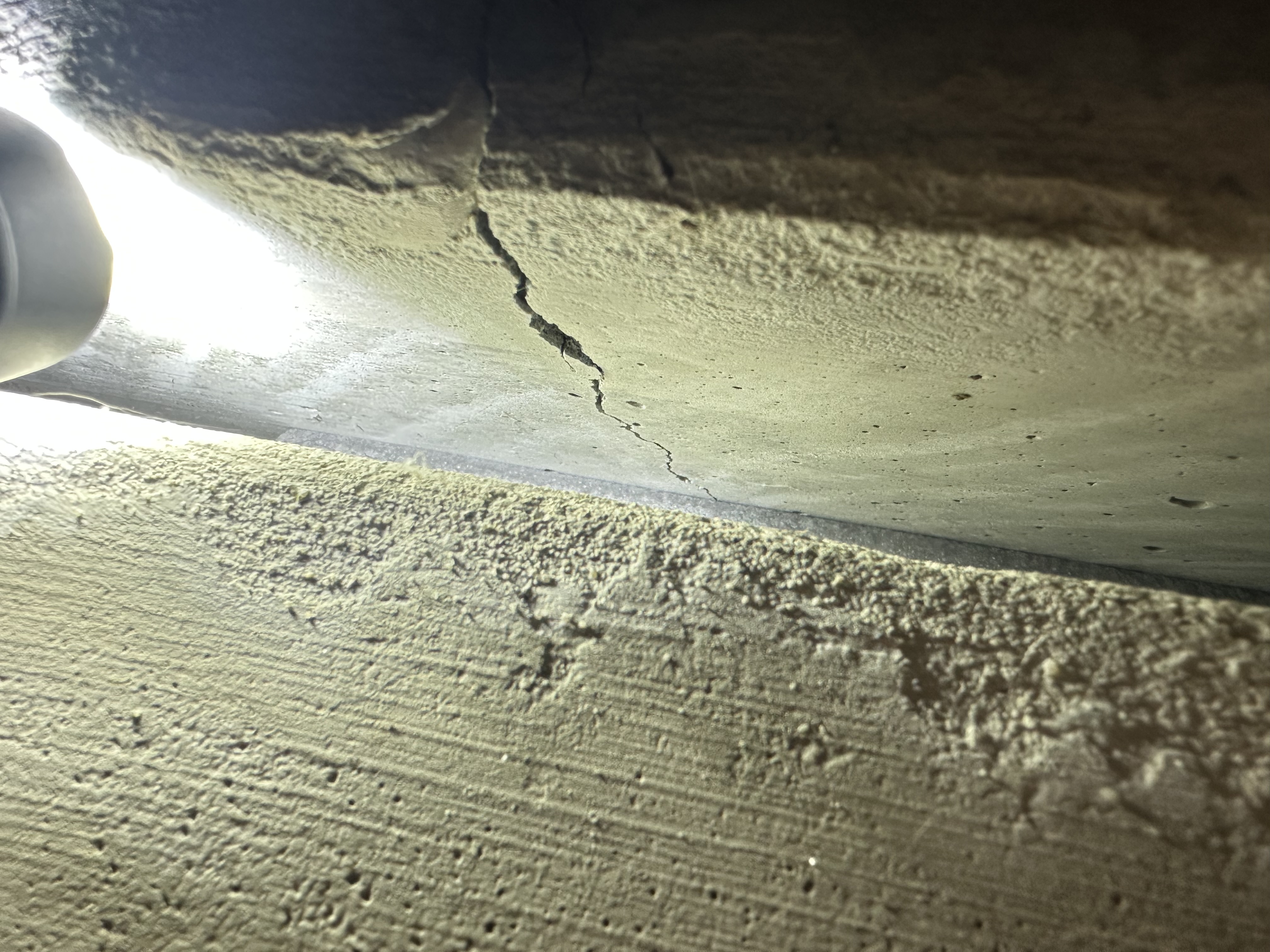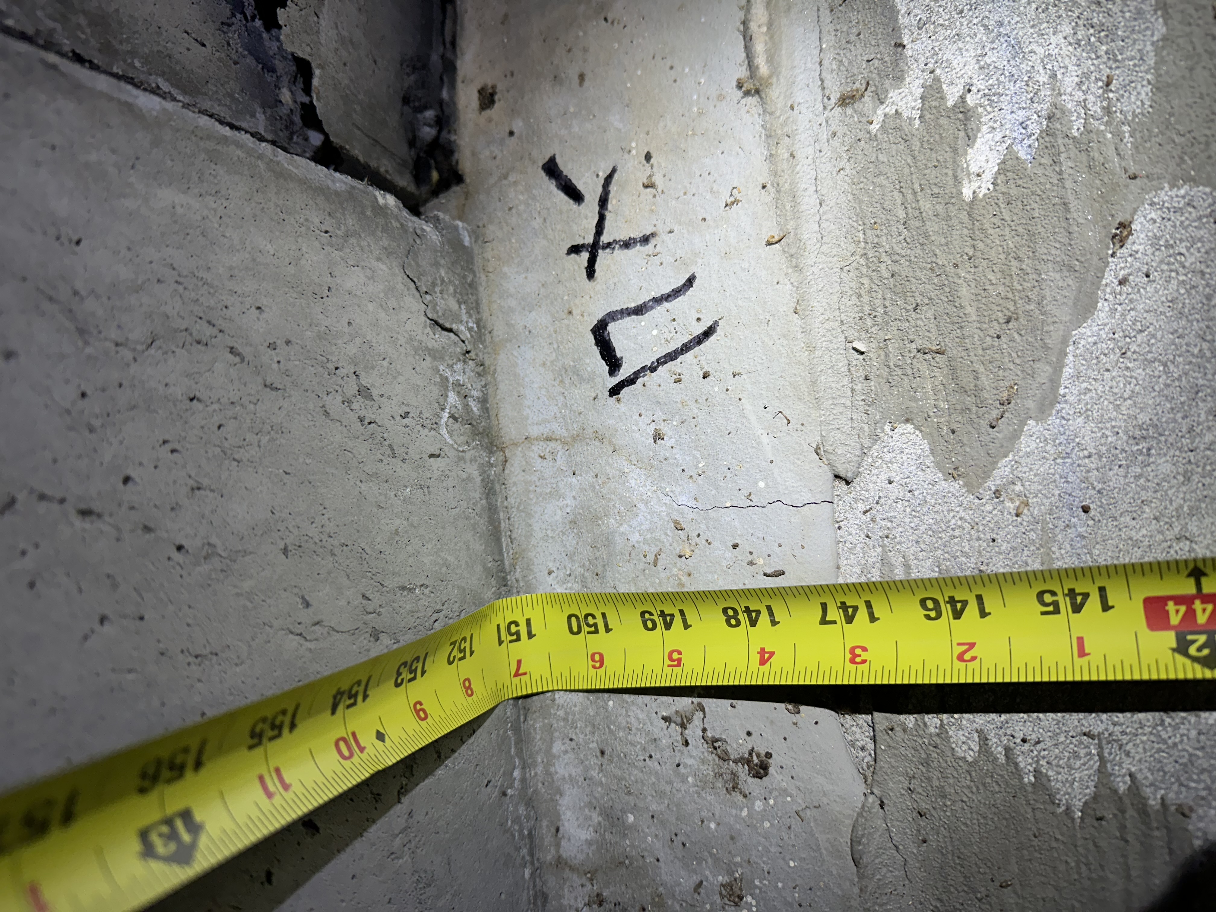 Following our influx of bees, M. Landry ordered an interior inspection of each beam tube enclosure (BTE) interior to document potential areas of ingress. R. Thompson with Apollo Mech is presently tasked with this inspection. During inspection of the X1 enclosure, roughly 5 sections -X of the X arm overpass, Randy observed cracking at the base of the interior of the enclosure. After further investigation he found 4-5 cracks running parallel of one another across the entire section at roughly the 10 & 2 o'clock positions. I was called to come give this section a second look. The cracks were also immediately concerning to me. The first thing I wanted to better understand was the interior width to assess if the section was shifting. With Randy's help, I measured the interior spans of each end of the neighboring tube sections (4 measurements) as well as an additional 4 of the same spans of the tube sections on display outside of the LExC. On average, these spans measure 151" +/- .25". The section in question measures 154" at each end. Moreover, during installation Fred Raab has informed us that grouting was done on the BTE interiors to mitigate a "walking" effect that was causing misalignment between sections. This grouting has clearly separated from the BTE interior which confirms that there is in fact splaying of this section. The current short term "fix" implemented by FAC and VAC has been the erection of scaffolding topped with planking across the 10' area of beam tube at risk of falling debris. This should act as makeshift roof. For the long term, R. McCarthy is currently consulting with structural engineers whom we hope can help us work up a solution to prevent further splaying. Contained in the photos attached are measurements with appropriate labeling of each section (number counted from second door on X1 traveling -X), as well as a "+X" or "-X" which simply denotes if the measurement is on the +X or -X end of the tube section, photos illustrating the separation of the BTE interior from the as-installed BTE grouting, the scaffolding presently in place, the cracking at the footing/mid sections, and a LIGO Yelp review written in welders soapstone (circa ~96') near the splayed tube section. C. Soike, E. Otterman, T. Guidry, G. Moreno, T. Sadecki, J. Vanosky, R. McCarthy
