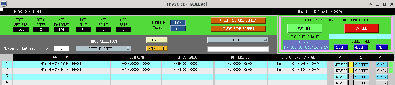 As a part of this, I was able to test TJ's new version of this script, /opt/rtcds/userapps/release/isc/h1/scripts/a2l/a2l_min_multi_sdf_cleanup.py