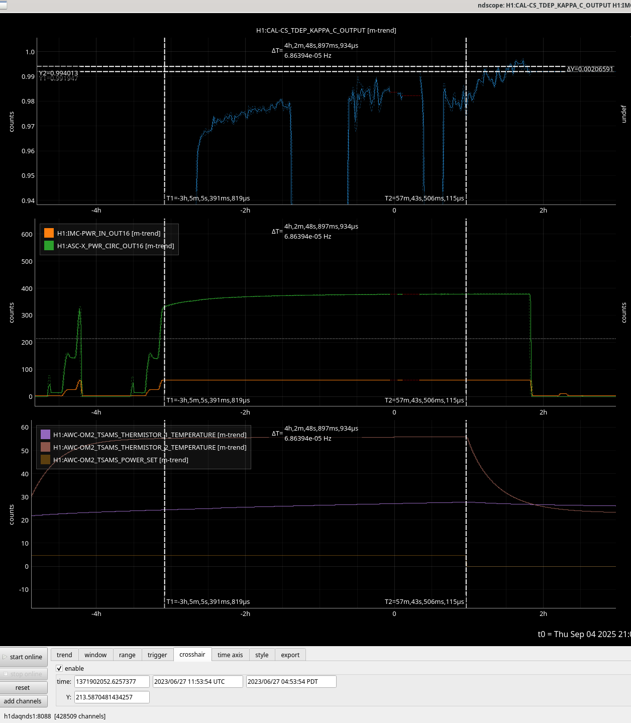 On the CDS side, none of my changes from today or yesterday have been uploaded to the 'rev-locked version of the model so everything was restarted with the old model config from yesterday morning. We will aim to restart with model changes to h1ascimc (that I made last night and this morning) at sometime Monday morning.