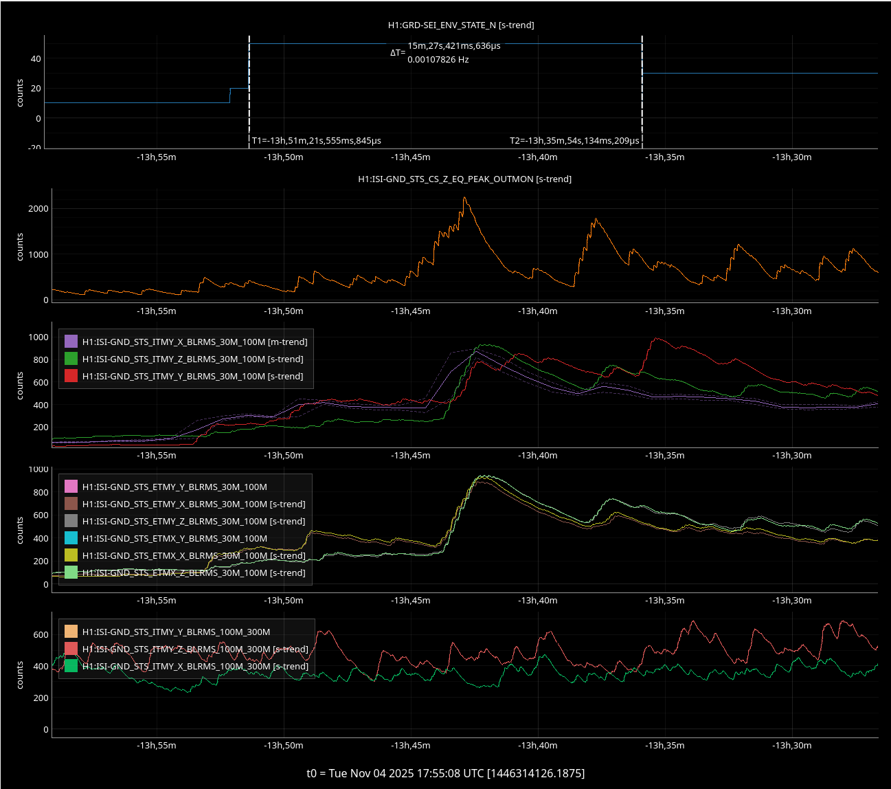 04:03 UTC We dropped observing, I brought us to Hi gain ASC as a semi large earthquake from Eastern Russia was hitting us (6.0)