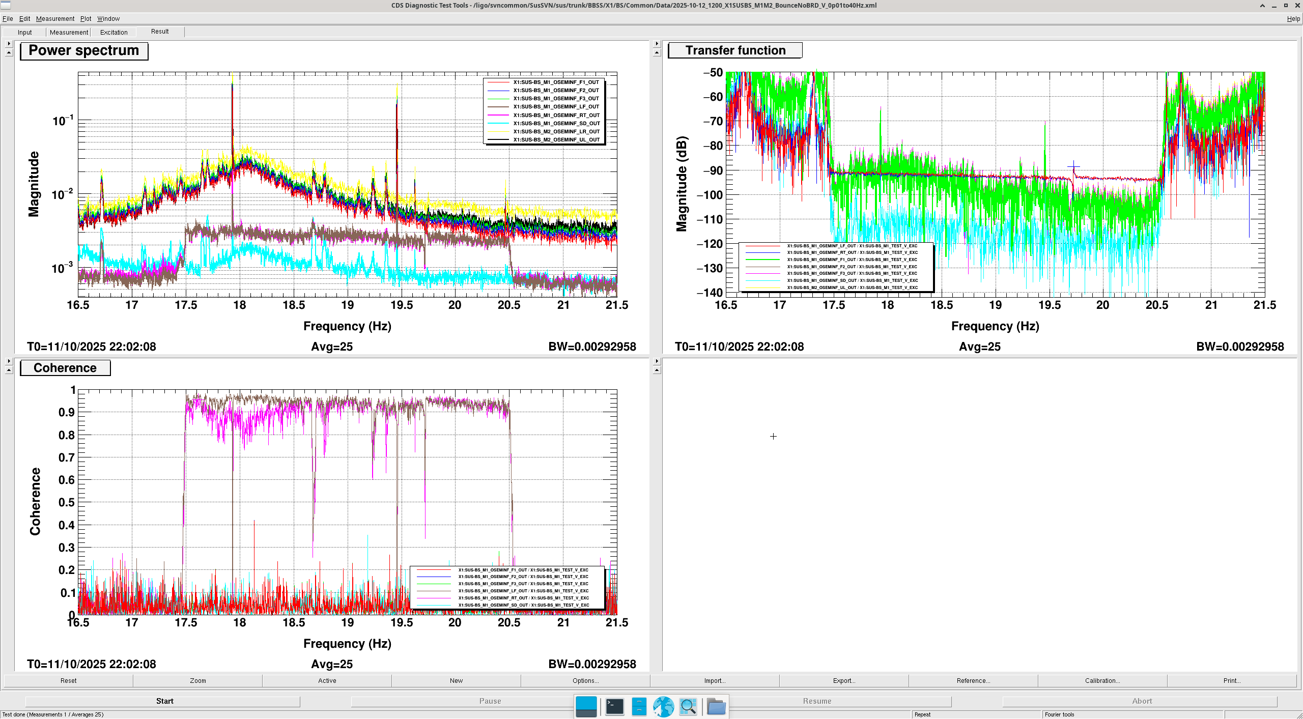 - In order to get decent coherence over the band of interest for the M3, M2, and M1 drives, I had to drive the suspension actuators in their highest range state, which is different from the state the IFO usually needs.