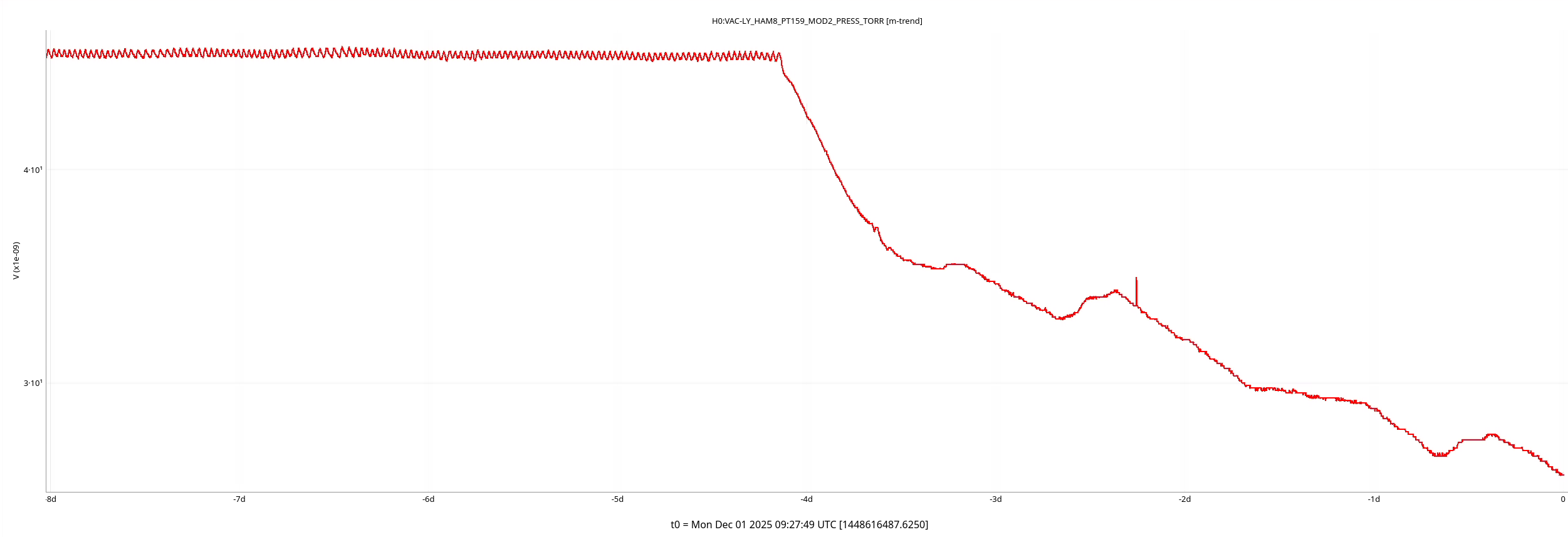 On a positive note the drop on temperature aides the internal pressure of all vacuum envelopes, internal to HAM8 and HAM8 annulus. See attached plot for internal pressure of HAM8 for a change of about 2.0x10-08 Torr.