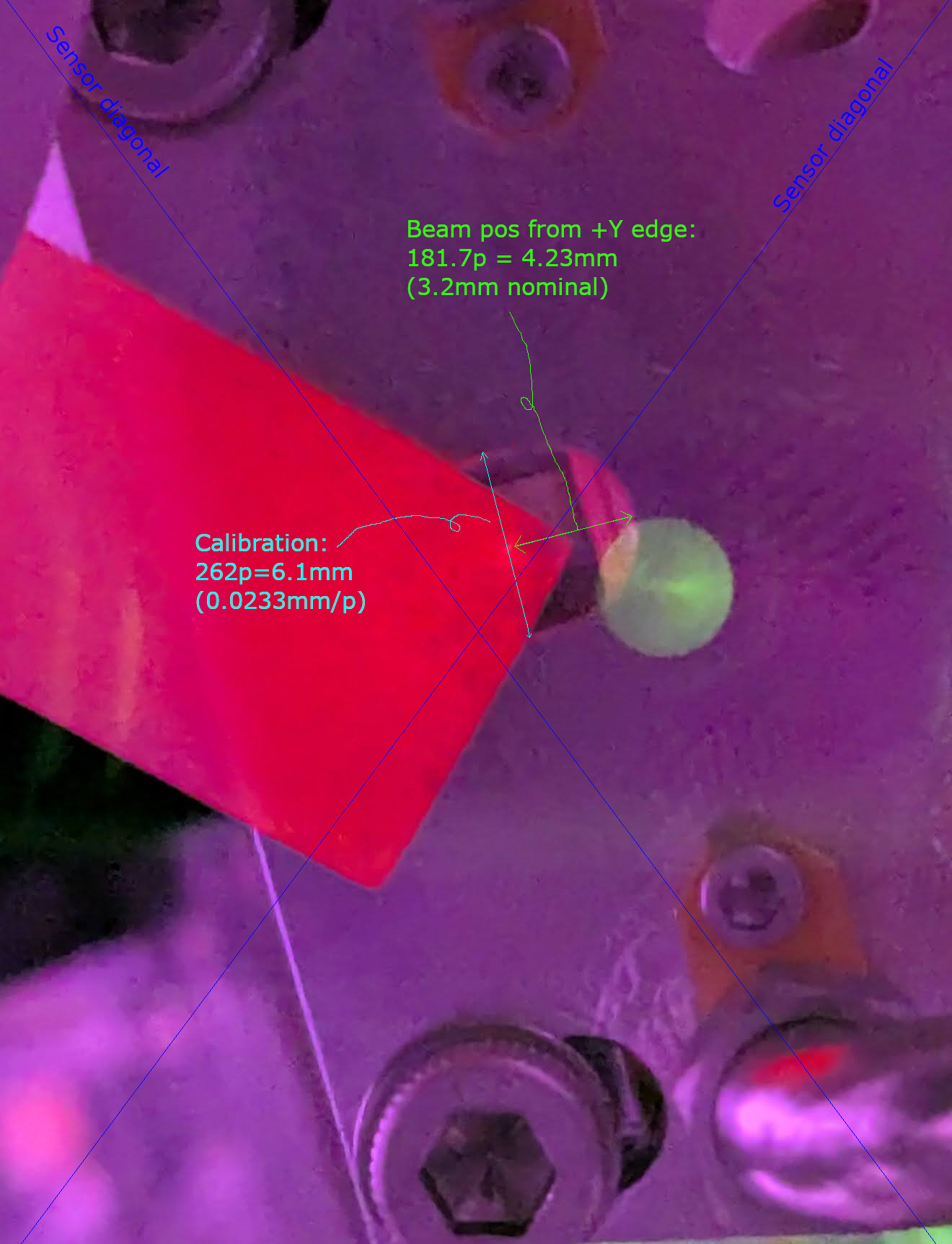 First photo shows the EOM from above, using a green torch to illuminate the beam path. I can't see any scatter from defects or cracks in the crystal.
