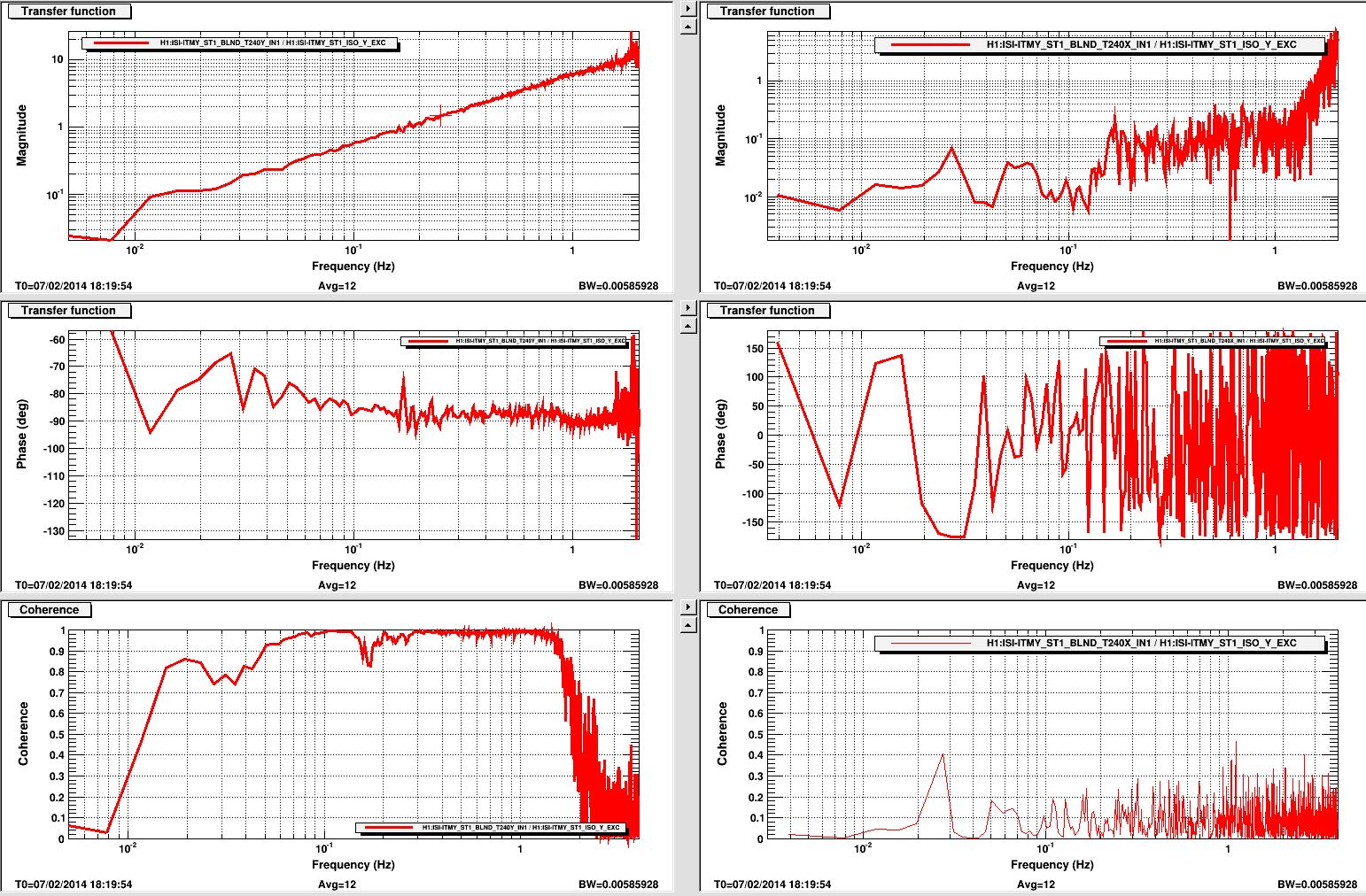 The values for ITMY Y-Tilt are -0.0007 & 0.0005 for YtoRX & YtoRY. The second plot is for this drive axis. The plot isn't as busy or interesting but the results are slightly better in the cross term.