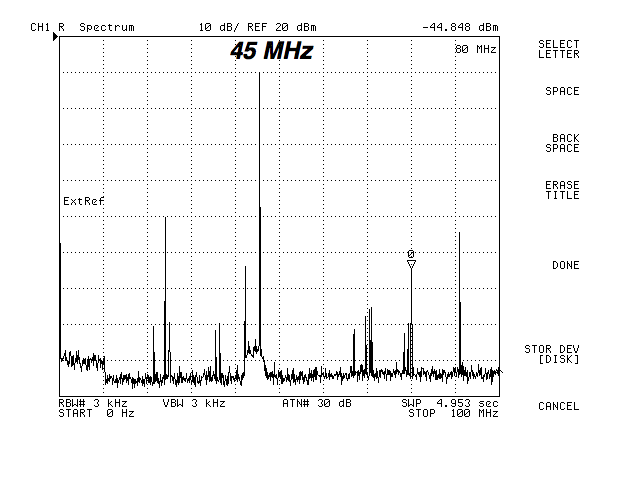 Figures: output from the 24 MHz RF amp (figure 1), 9 MHz RF amp (figure 2) and 45 MHz RF amp (figure 3).