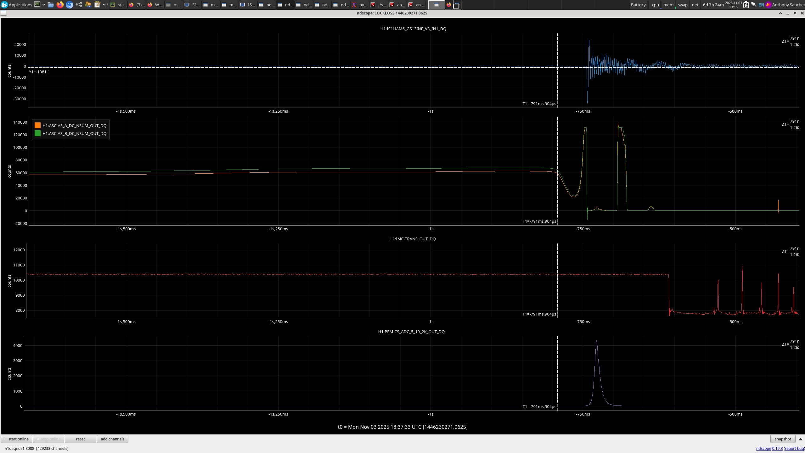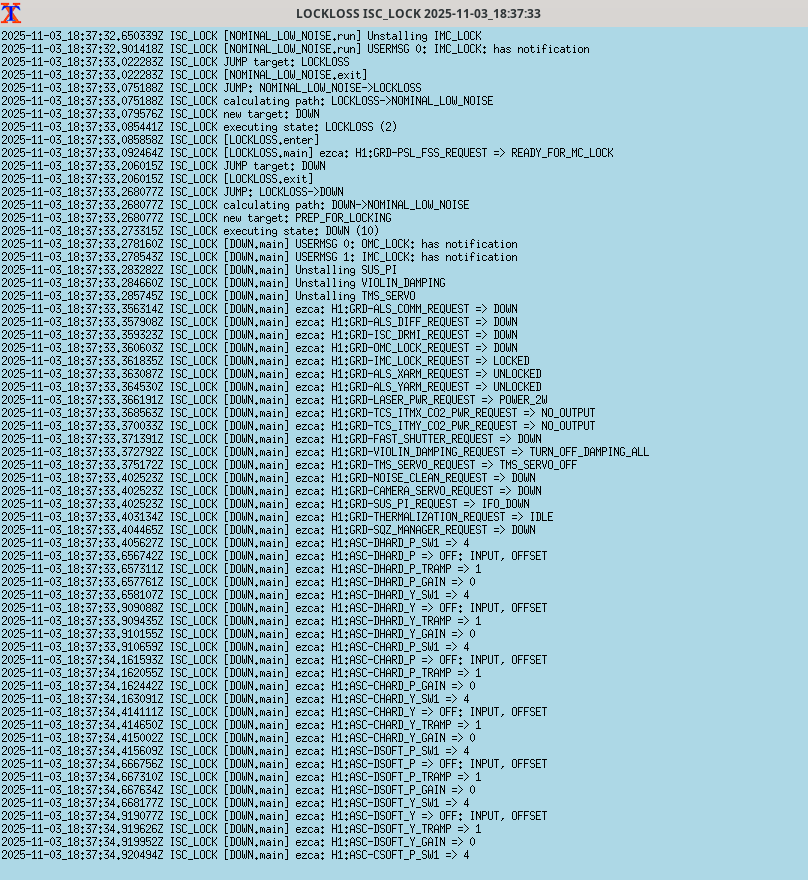 04:03 UTC We dropped observing, I brought us to Hi gain ASC as a semi large earthquake from Eastern Russia was hitting us (6.0)