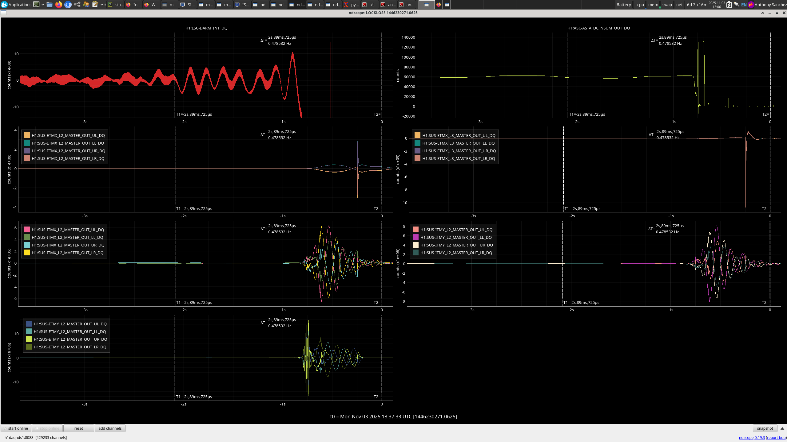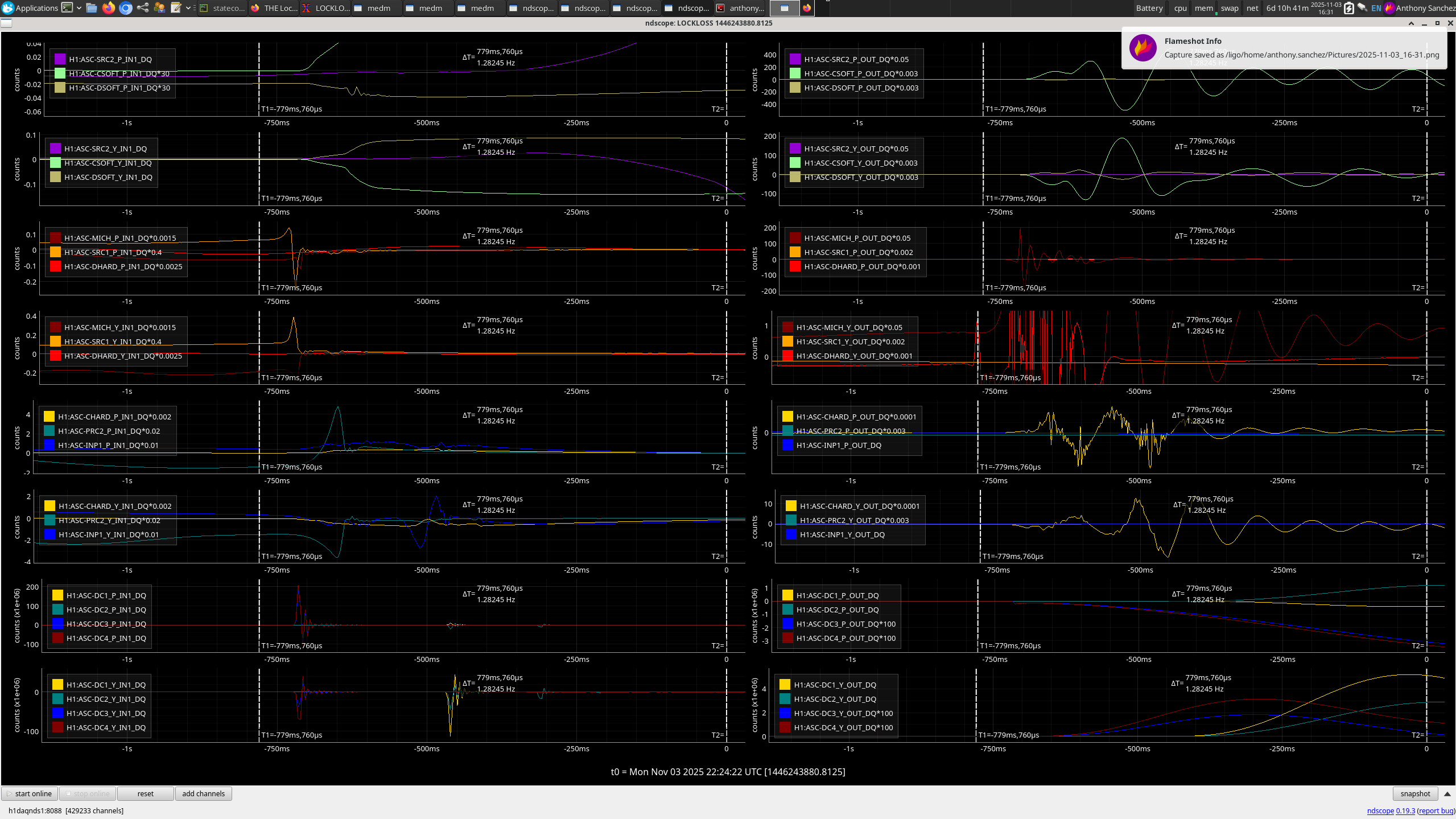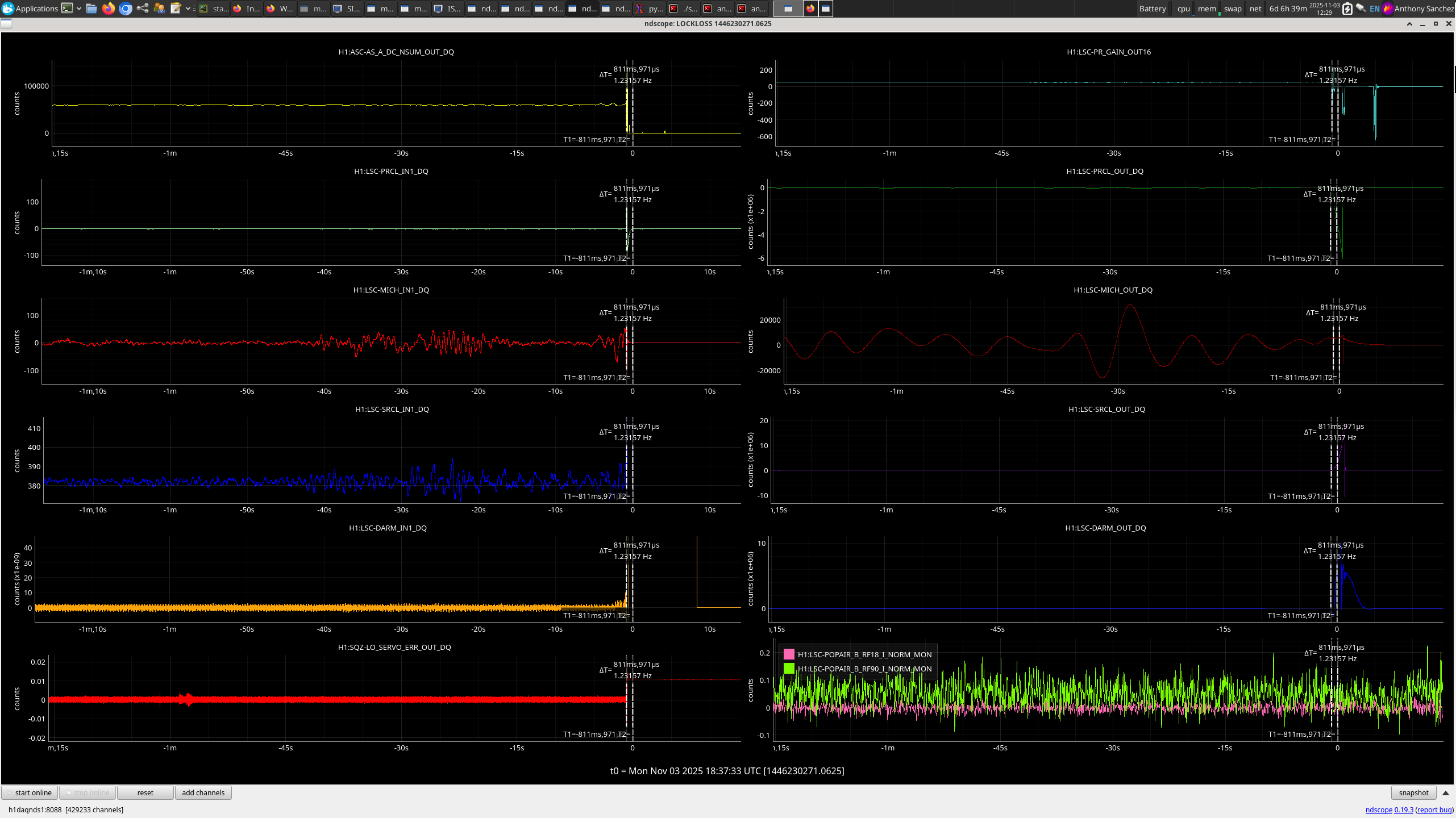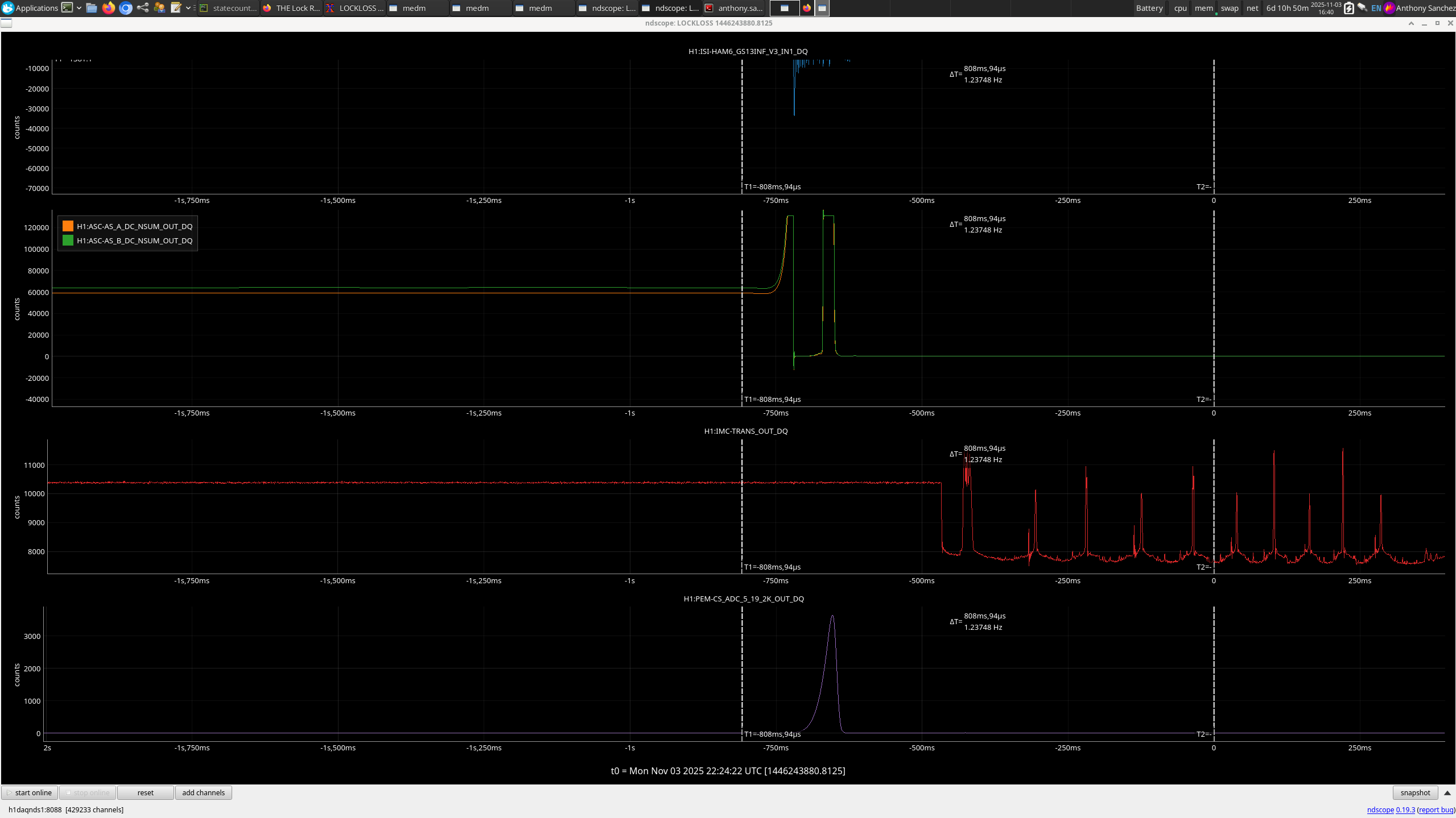 Once that had properly damped the oscillation and used the ASC Low gain button we were able to do some Observing.