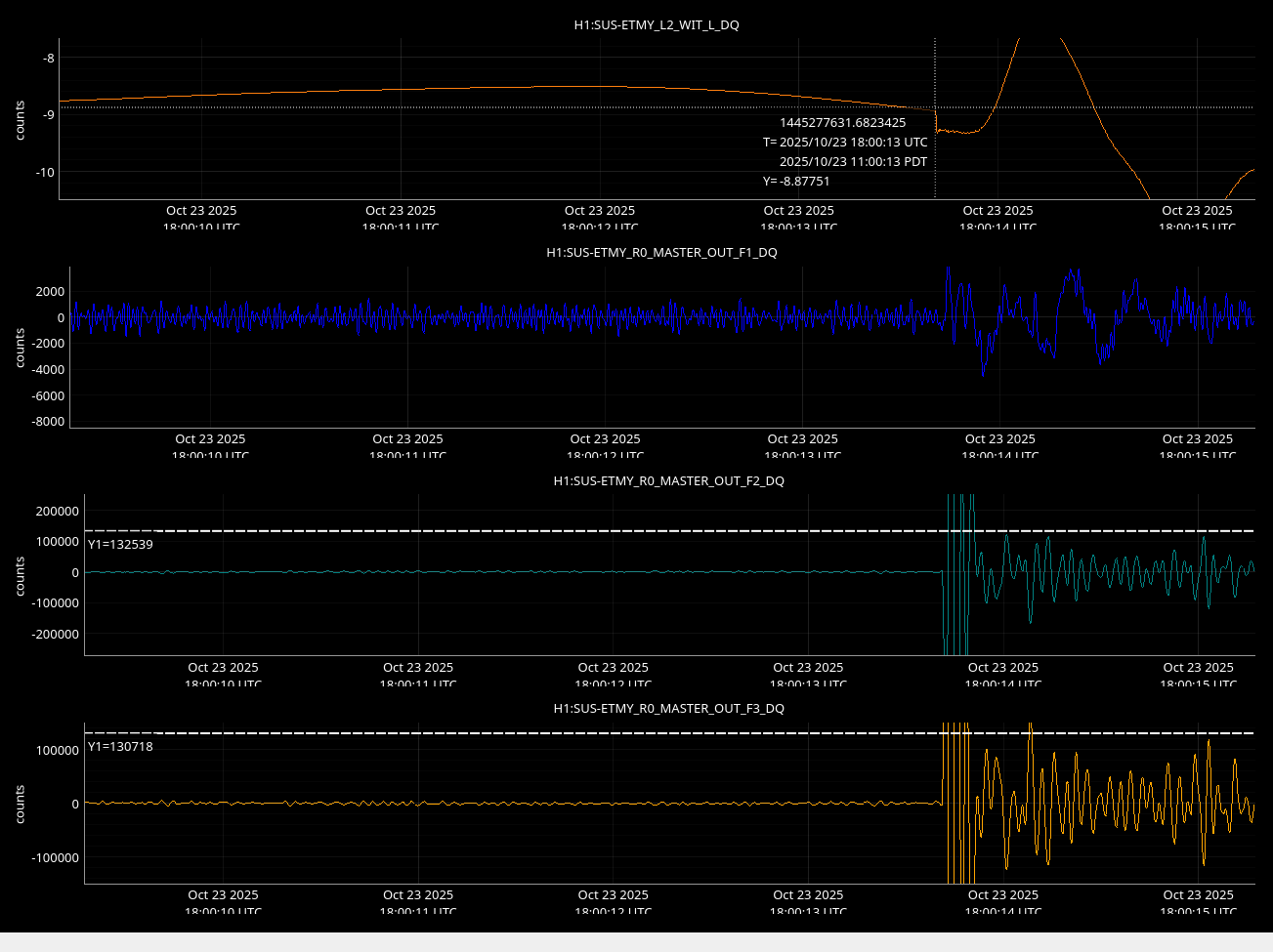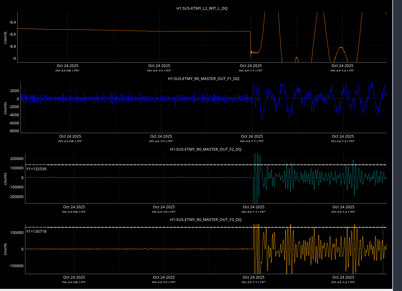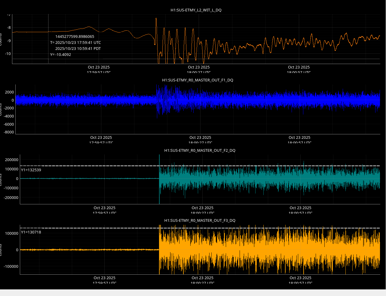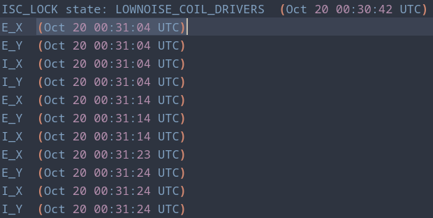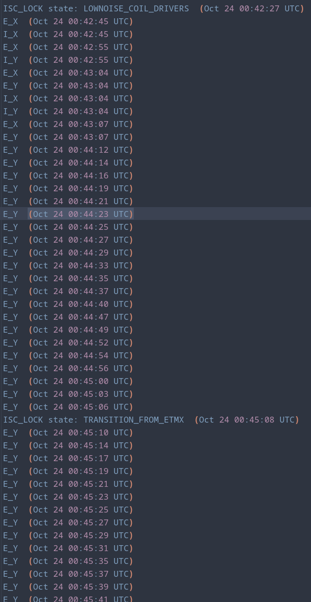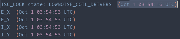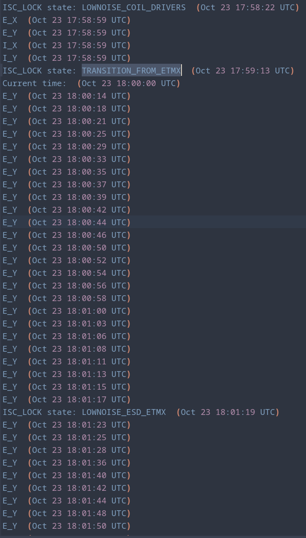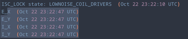 | Lots of EY saturations during LOWNOISE_COIL_DRIVERS / TRANSITION_FROM_ETMX | |||