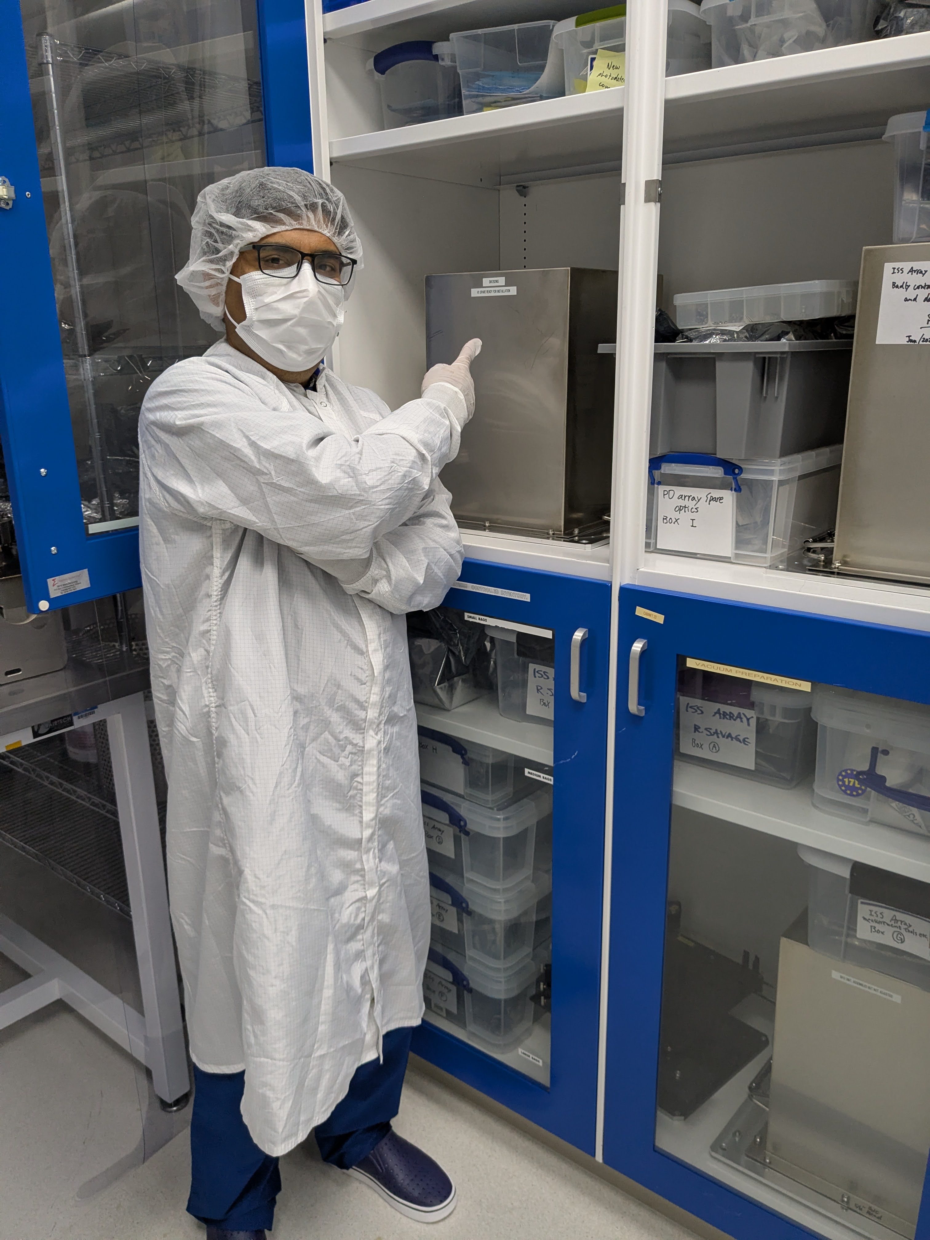We disconnected everything from the ISS array installation spare unit S1202965 and stored it in the ISS array cabinet in the vac prep area next to the OSB optics lab. See the first 8 pictures.
