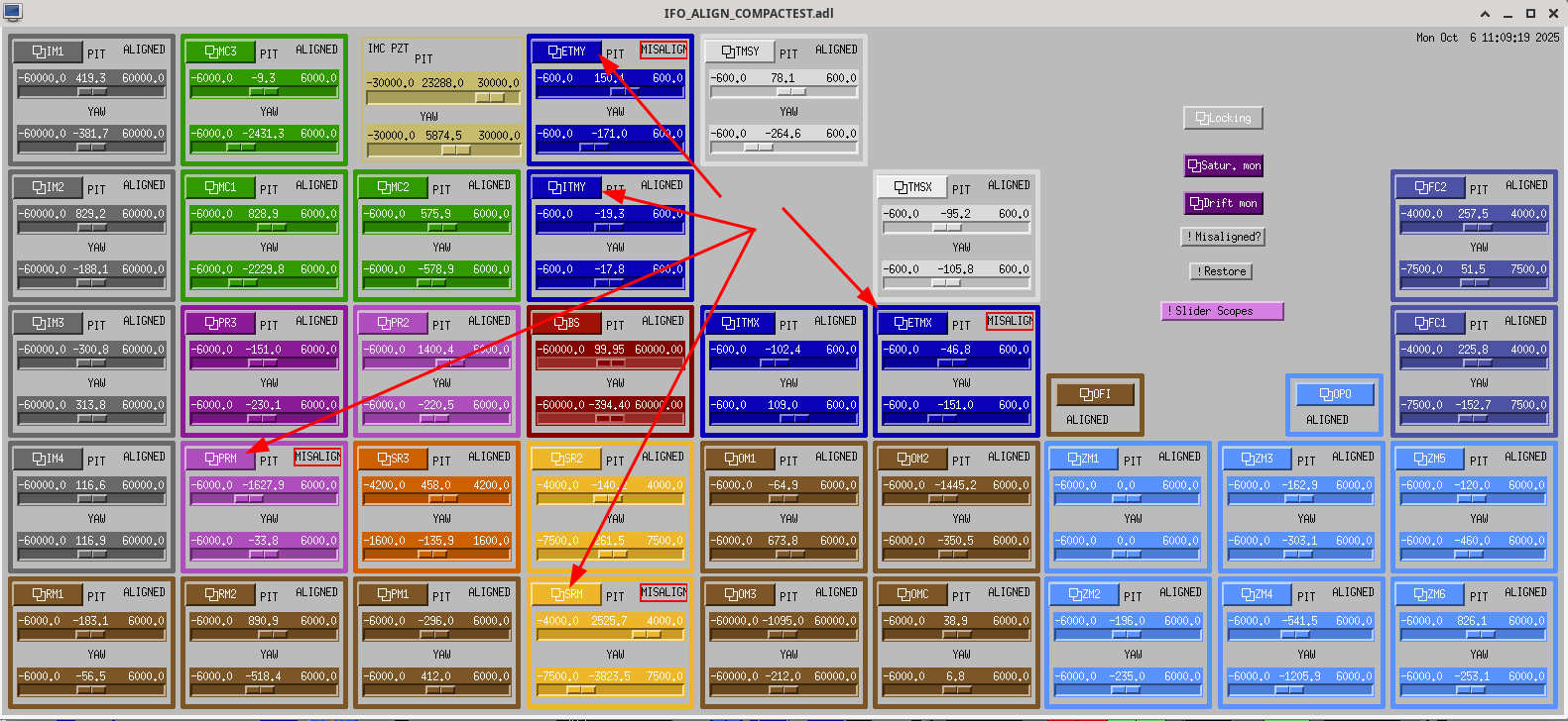 For PRM (M2, M3), SRM (M2, M3), BS (M2), ITMX (L1), ITMY (L1), ETMY (L1), SR2 (M2, M3), PR2 (M2, M3)